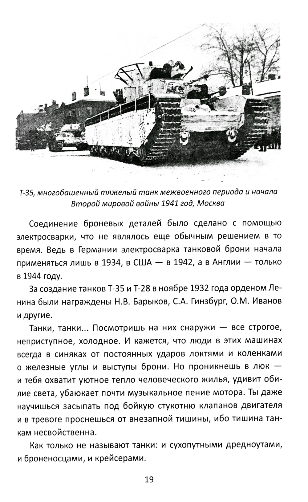 Книга интересно, динамично и правдиво рассказывает о рождении советских танковых КБ. опытных цехов и промышленных гигантов, ответственных за производства танков и САУ до и во время Великой Отечественной войны. Рядом с географией и экономикой, как объективностью советского танкостроения, действуют удивительные люди, с вдохновением создающие уникальные машины для армии, фронта и Победы. На страницах книги опыт поиска, самой правильной конструкции тяжелой машины, преодоление противоречий и торжество коллективного труда во имя и во многом вопреки обстоятельствам, условностям, традициям и т.д. Привлекает сюжетная линия противоборства советских и немецких моделей танков, борьба конструкций и технологий, последовательность рождения новых принципов компоновки корпуса, его бронирования, применения больших калибров орудий при сохранении скорости и маневренности танков и САУ. Не остались без внимания и союзники: техника ленд-лиза, её особенности и отличия.| Издательство | Родина |