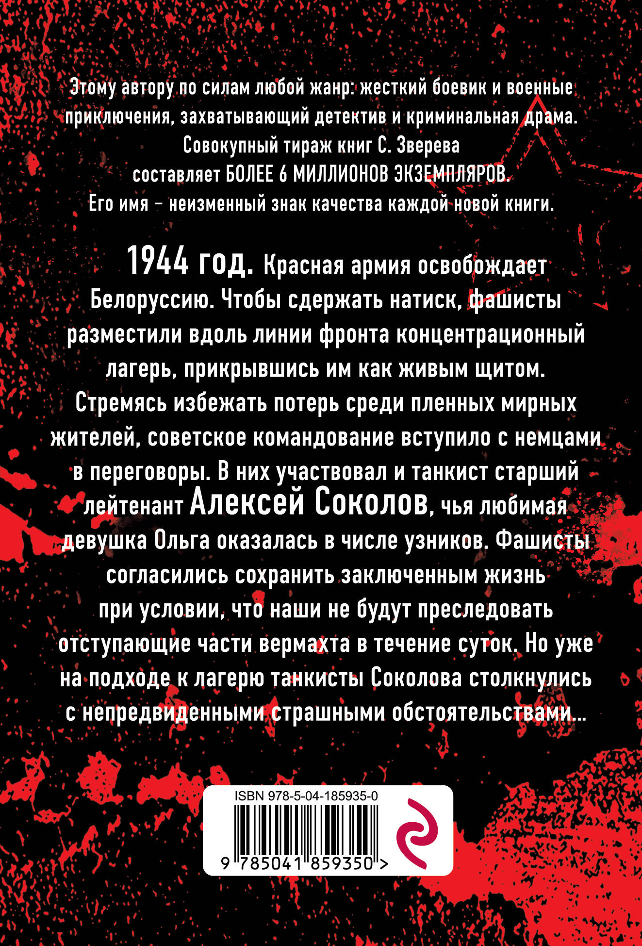 Этому автору по силам любой жанр: жесткий боевик и военные приключения, захватывающий детектив и криминальная драма. Совокупный тираж книг С. Зверева составляет более 6 миллионов экземпляров. Его имя - неизменный знак качества каждой новой книги. 1944 год. Красная Армия освобождает Белоруссию. Чтобы сдержать натиск, фашисты разместили вдоль линии фронта концентрационный лагерь, прикрывшись им, как живым щитом. Стремясь избежать потерь среди пленных мирных жителей, советское командование вступило с немцами в переговоры. В них участвовал и танкист старший лейтенант Алексей Соколов, чья любимая девушка Ольга оказалась в числе узников. Фашисты согласились сохранить заключенным жизнь при условии, что наши не будут преследовать отступающие части вермахта в течение суток. Но уже на подходе к лагерю танкисты Соколова столкнулись с непредвиденными страшными обстоятельствами…