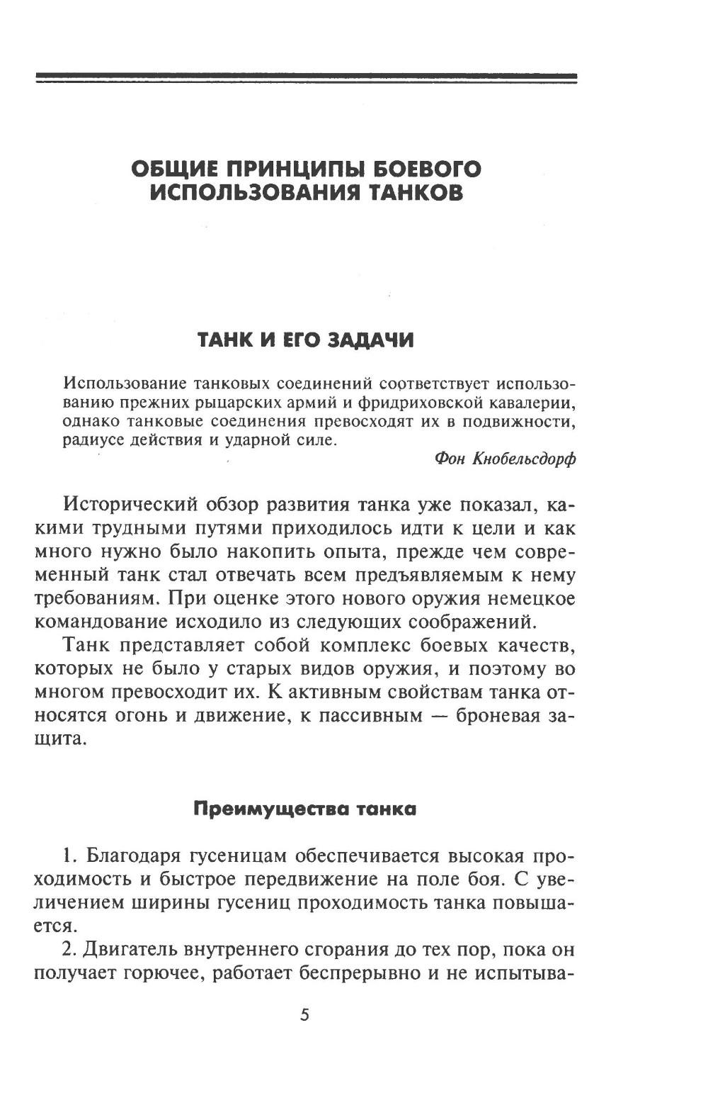 Генерал-полковник вермахта Гейнц Гудериан, создатель немецких бронетанковых войск, обобщает опыт боевого применения танков во Второй мировой войне на различных театрах военных действий. Приводит принципы разведки и охранения, организации наступления и преследования противника, взаимодействия танковых частей с другими родами войск. Рассматривает технические характеристики и действие боевых машин в различных ситуациях: в борьбе за населенный пункт, при овладении плацдармом, в окружении, в условиях плохой видимости и других.| Издательство | Центрполиграф |