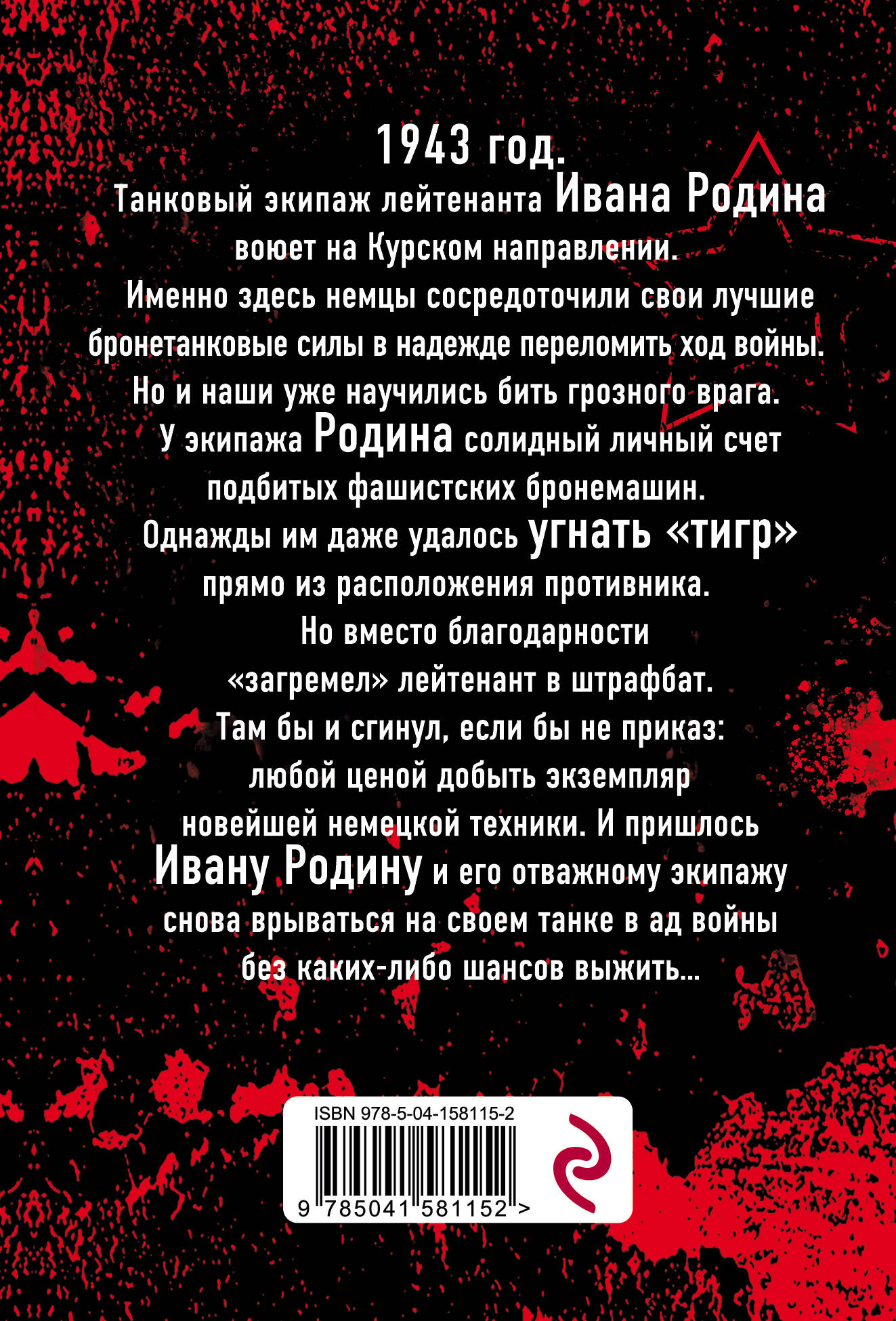 Их жизнями выстлана дорога к Победе… Исключительные по своей правде романы о Великой Отечественной. Грохот далеких разрывов, запах пороха, лязг гусениц - страшные приметы войны заново оживают на страницах книг, написанных внуками тех, кто в далеком 45-м дошел до Берлина. 1943 год. Танковый экипаж лейтенанта Иван Родина воюет на Курском направлении. Именно здесь немцы сосредоточили свои лучшие бронетанковые силы в надежде переломить ход войны. Но и наши уже научились бить грозного врага. У экипажа Родина солидный личный счет подбитых фашистских бронемашин. Однажды им даже удалось угнать «Тигр» прямо из расположения противника. Но вместо благодарности «загремел» лейтенант в штрафбат. Там бы и сгинул, если бы не приказ: любой ценой добыть экземпляр новейшей немецкой техники. И пришлось Ивану Родину и его отважному экипажу снова врываться на своем танке в ад войны без каких-либо шансов выжить…| Издательство | ООО "Издательство "Эксмо" |