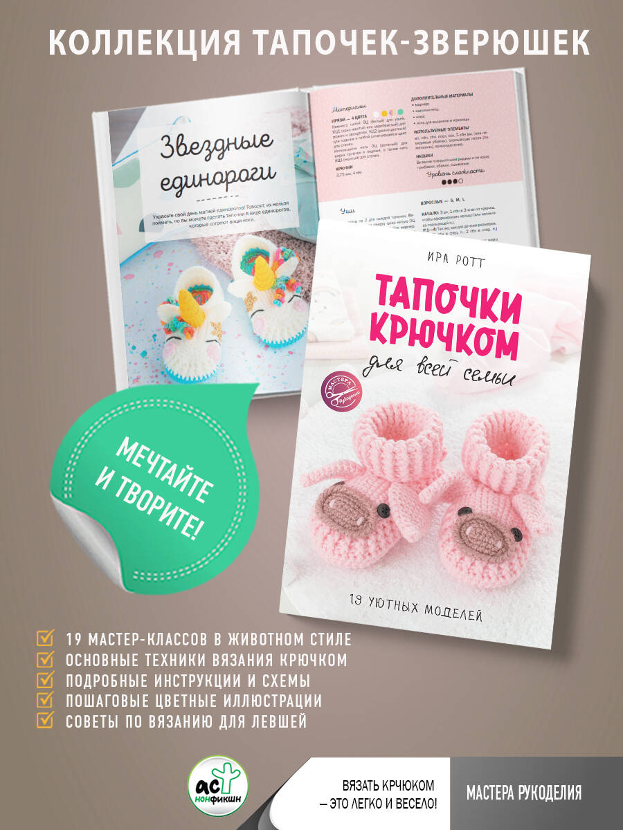 Ира Ротт - канадский дизайнер, художница и автор книг по вязанию крючком. Ее самая большая страсть - создание мотивов и узоров, вдохновленных животным миром и природой. Вы сможете связать целую коллекцию из разнообразных тапочек, следков и чуней в анималистическом стиле для всей семьи. Книга подходит как для новичков, так и для опытных мастеров, все мастер-классы разделены по уровням: от простых к более сложным. Здесь вы найдете: • 17 оригинальных мастер-классов тапочек в животном стиле; • основные техники вязания крючком; • подробные инструкции, схемы и пошаговые иллюстрации; • рекомендации по вязанию крючком для левшей; • вдохновляющие идеи для создания собственного дизайна. Мечтайте, творите и экспериментируйте, ведь вязать крючком - это легко и весело!| Издательство | Издательство "АСТ" |