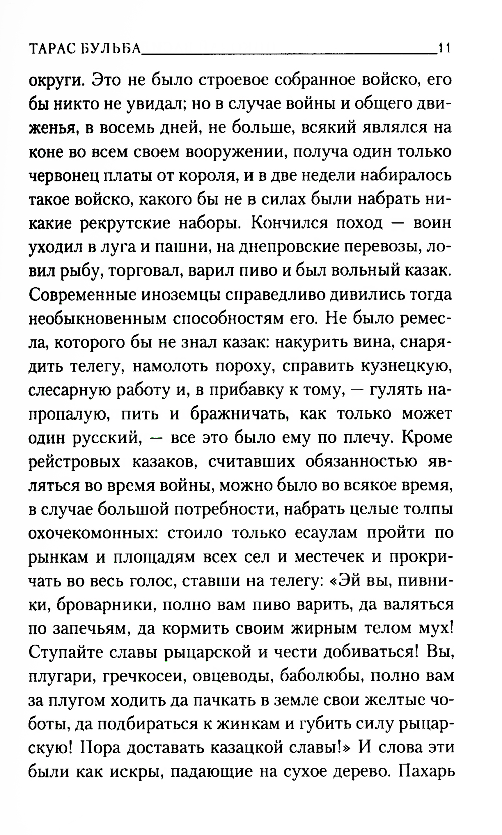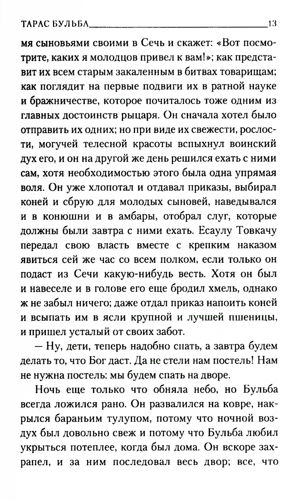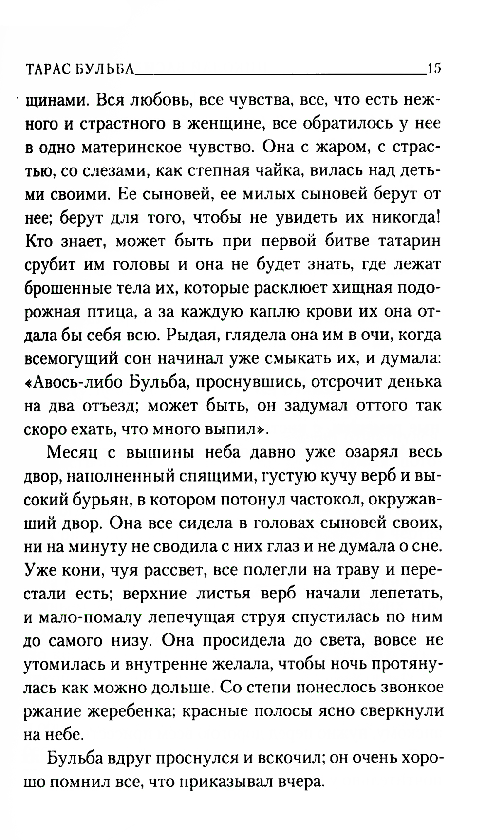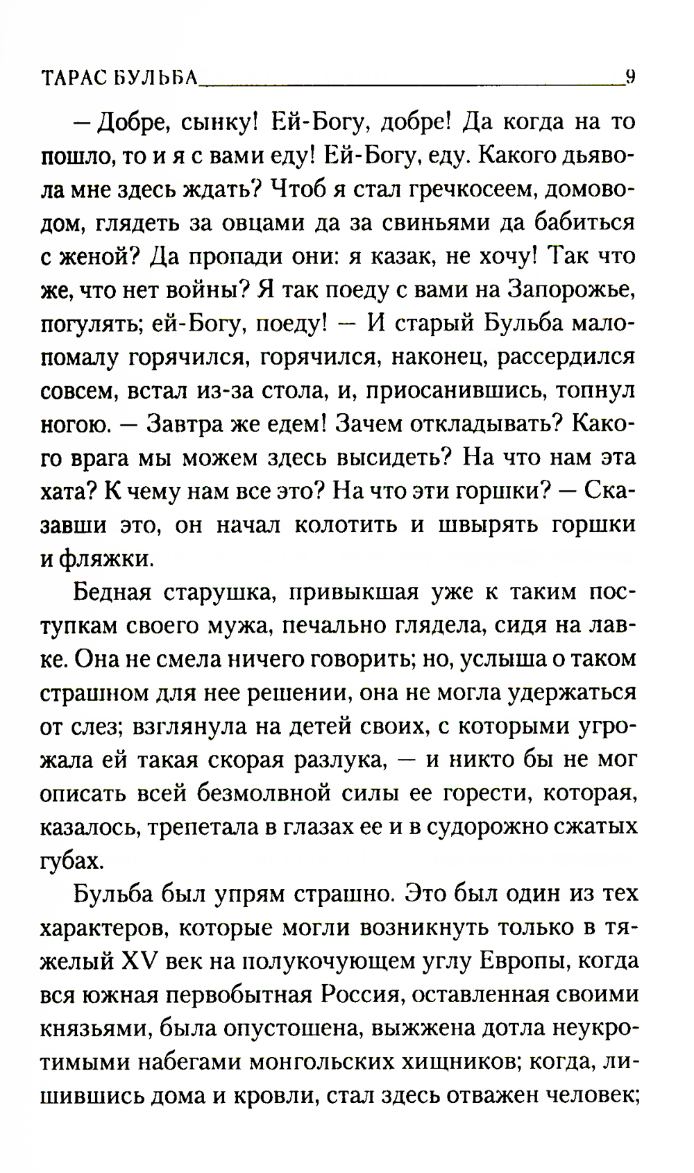 Николай Васильевич Гоголь (1809-1852) - известный прозаик и драматург, классик русской литературы. О собственном творчестве Гоголь говорил: «У меня только то и выходило хорошо, что взято было мной из действительности». Писатель часто обращался к мифам, легендам и прочим фольклорным источникам, отчего реальный мир в его произведениях часто переплетался с фантастическим. Повесть «Тарас Бульба» входит в цикл «Миргород» и рассказывает о жизни запорожских казаков первой половины XVII века. Полковник Тарас Бульба хочет испытать своих сыновей в бою и берет их в военный поход. Белинский писал о главном герое: «У этого человека была идея, которою он жил и для которой он жил… он не пережил ее, он умер вместе с нею… Для нее убил он собственною рукою милого сына, для нее он умер и сам». Это героический эпос о любви и предательстве, о долге и чести, доблести и жестокости.| Издательство | Омега-Л |