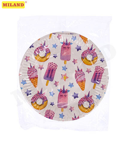 Тарелка бумажная Единороги-сладости (17 см, 6 шт) флоупак ФЛ-7470