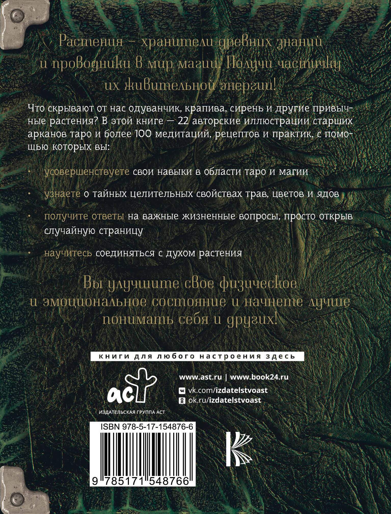 Растения - хранители древних знаний и проводники в мир магии. Получи частичку их живительной энергии! Что скрывают от нас одуванчик, крапива, сирень и другие привычные растения? В этой книге - 22 авторские иллюстрации старших арканов таро и более 100 медитаций, рецептов и практик, с помощью которых вы: • усовершенствуете свои навыки в области таро и магии • узнаете о тайных целительных свойствах трав, цветов и ядов • получите ответы на важные жизненные вопросы, просто открыв случайную страницу • научитесь соединяться с духом растения Вы улучшите свое физическое и эмоциональное состояние и начнете лучше понимать себя и других!| Издательство | ИЗДАТЕЛЬСТВО "АСТ" |
