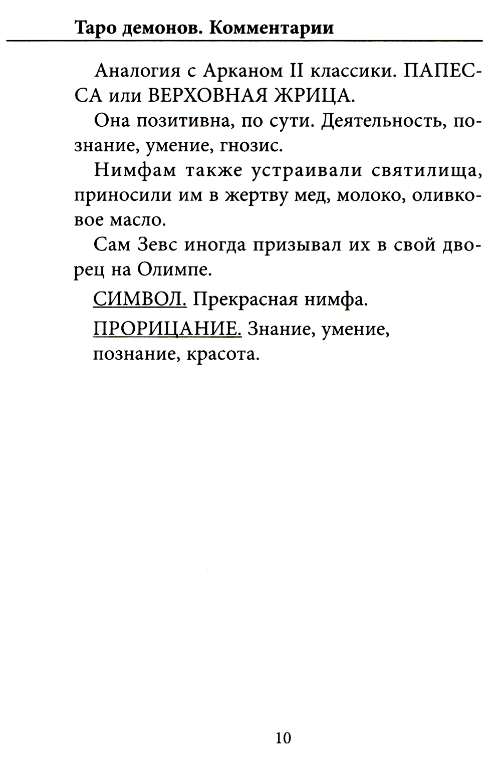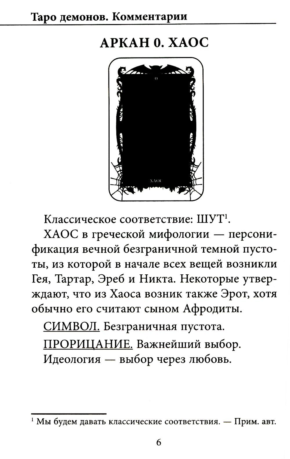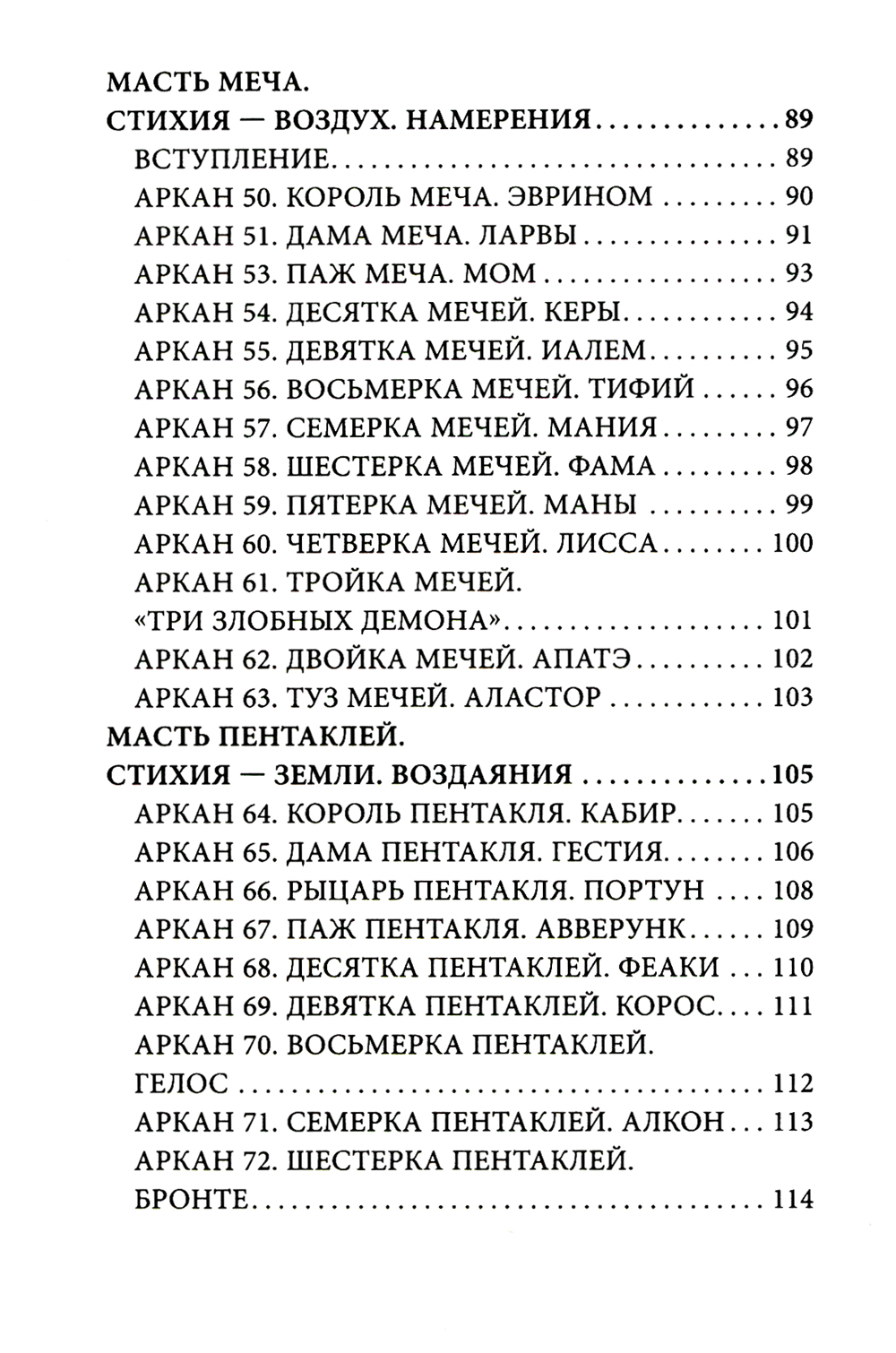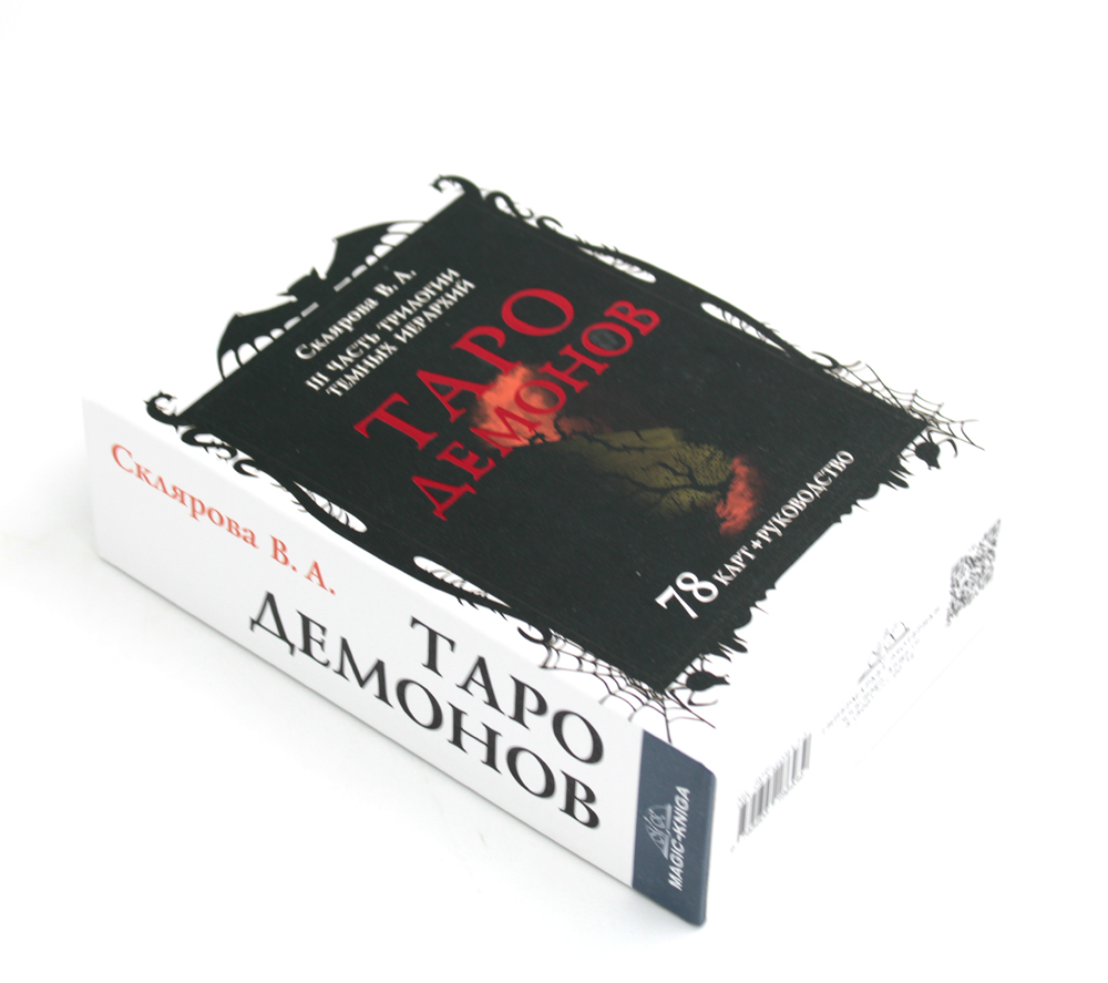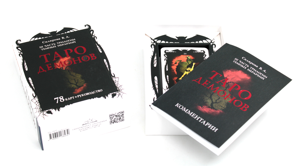Эта колода - третья и завершающая в Черной трилогии «Темные Иерархии». Колода работает для раскрытия влияния демонических иерархий во всех аспектах бытия. Она даст вам возможность лучше проработать конфликтные и максимально сложные ситуации в жизни. «Таро Демонов» может использоваться как самостоятельная колода, и как колода параллельного плана (работать в паре в другой колодой). В книге даны пять примеров раскладов. Колода Таро Демонов «защищена» свыше от прямого воздействия негативных сил и вибраций, поэтому работа с ней безопасна для пользователей.
