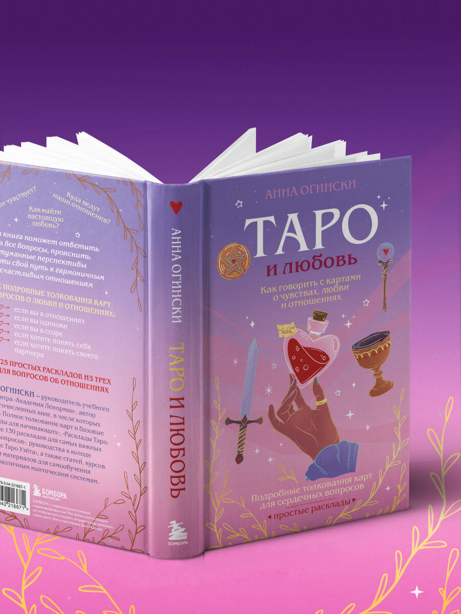 Книга «Таро и любовь» Анны Огински станет вашим надежным путеводителем по романтической стороне Таро. Здесь вы найдете понятные значения карт Таро, применимые именно к любовным вопросам, без перегрузки сложными терминами, и с помощью простых раскладов на любовь сможете сделать прогнозы для любых ситуаций - будь то новое знакомство, стабильные отношения или кризис. Эта книга даст вам инструменты для понимания партнера и себя, потому что любовь начинается с честности и осознанности. В этой книге - самые подробные толкования карт для вопросов о любви и отношениях: • Если вы в отношениях. • Если вы одиноки. • Если вы в ссоре. • Если хотите понять себя. • Если хотите понять своего партнера. Помните: Таро не говорит, что делать. Оно лишь дает подсказки и указывает направление. Все решения - в ваших руках, потому что именно вы создаете свою историю любви. Откройте свое сердце, доверьтесь интуиции и позвольте Таро стать вашим проводником. АННА ОГИНСКИ - руководитель учебного центра «Академия Ленорман», автор многочисленных книг, в числе которых «Таро. Полное толкование карт и базовые расклады для начинающих», «Расклады Таро. Более 130 раскладов для самых важных вопросов», «Оракул Ленорман. Самоучитель по гаданию и работе с картами», руководства к колоде «Новое Таро Уэйта» и к оракулу Ленорман «Тайный Сад», а также статей, курсов и материалов для самообучения по различным мантическим системам.| Издательство | ООО "Издательство "Эксмо" |