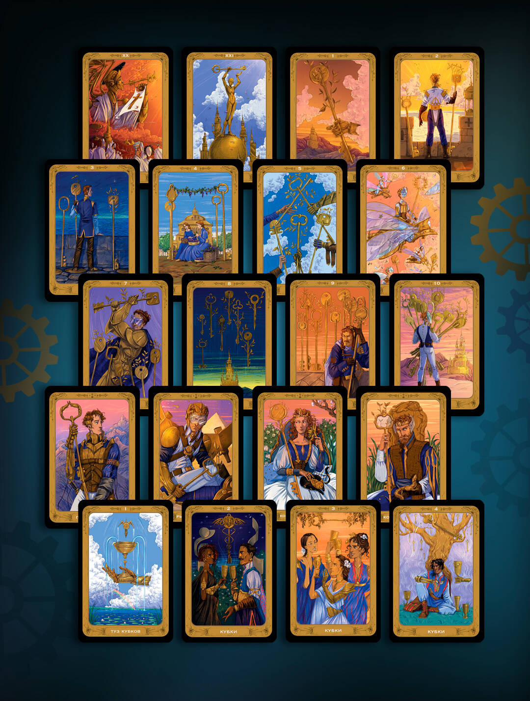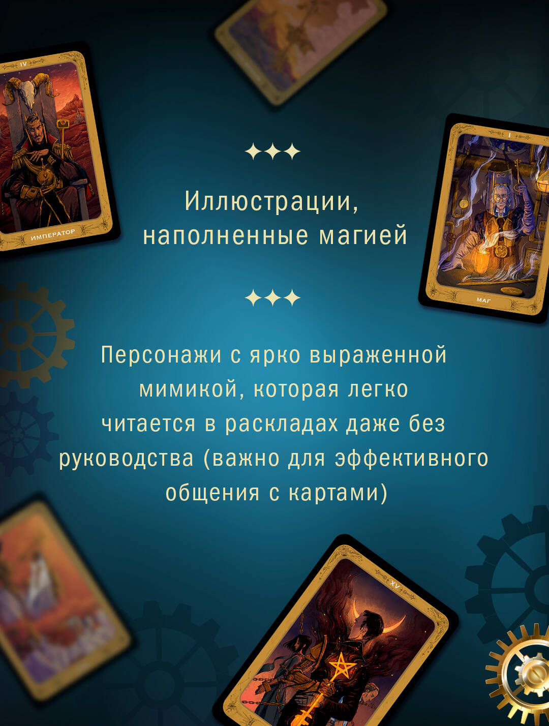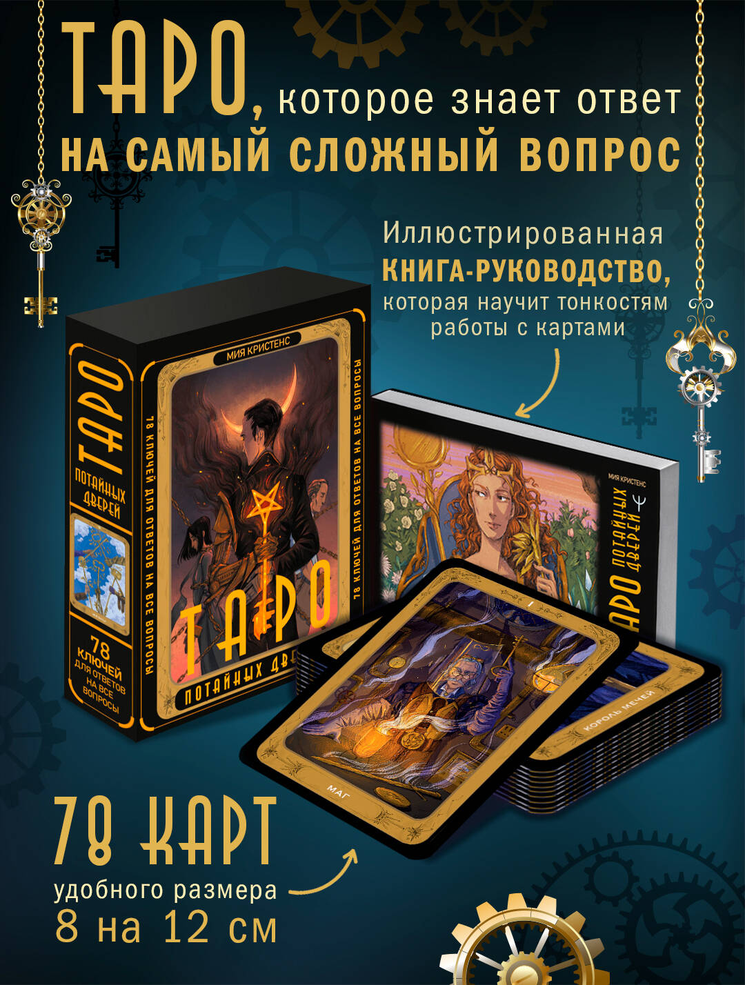 "Таро Потайных дверей" - колода, выполненная в уникальном стиле стимпанк, который лучше всего отражает ее характер. Эти карты созданы для тех, кто задает вопросы и хочет узнать, как устроена Вселенная. Таро может ответить на любой вопрос в любом времени, но колода 78 ключей всегда стремится в светлое будущее. Она точно покажет исход событий, в зависимости от того, что происходит в вашем настоящем, и даст совет, как достичь наилучшего результата. Образ Золотой эры, который создала художница Мара Марч, идеально передает суть колоды. Эмоции персонажей легко читаются и значение карты понятно даже без инструкции - достаточно посмотреть на нее, чтобы почувствовать, что она хочет вам сказать. Комплект состоит из 78 карт, брошюры-инструкции с толкованиями и раскладами и упакован в большую подарочную коробку. Найдите свой золотой ключ и отоприте любую дверь. Добро пожаловать в удивительный мир будущего!| Издательство | ИЗДАТЕЛЬСТВО "АСТ" |