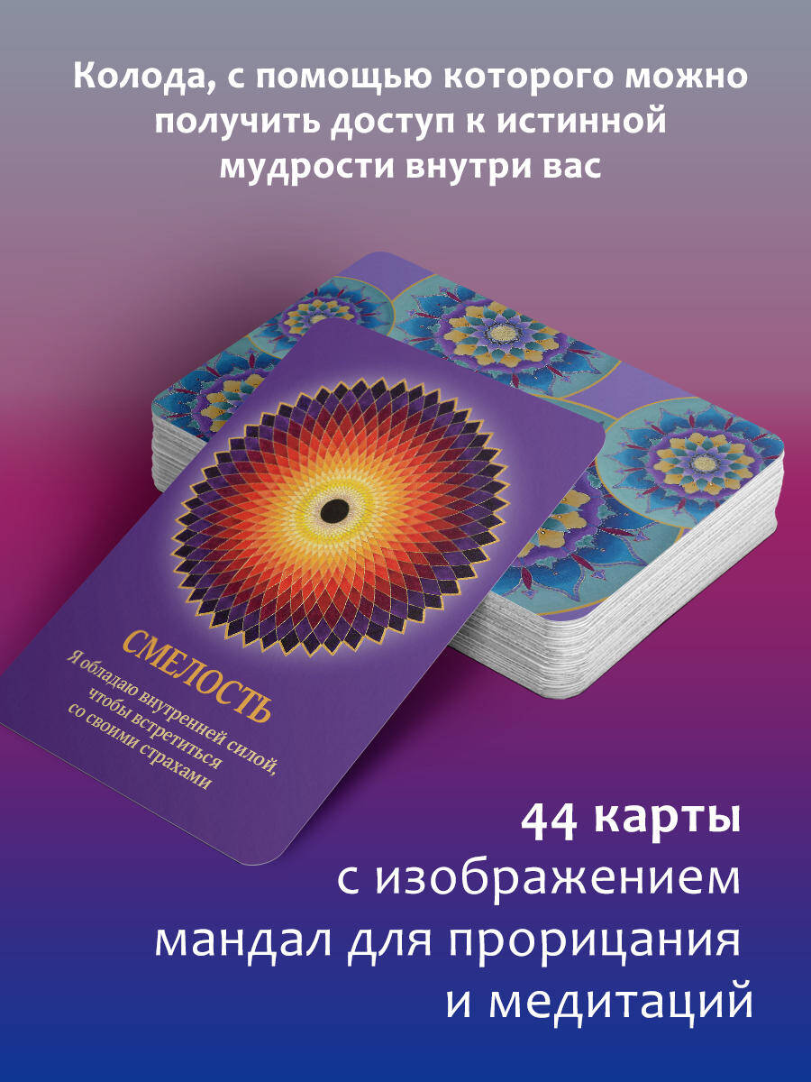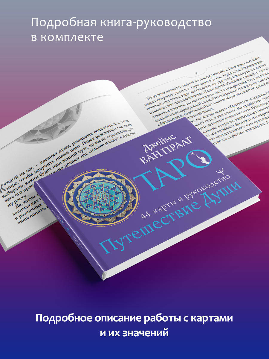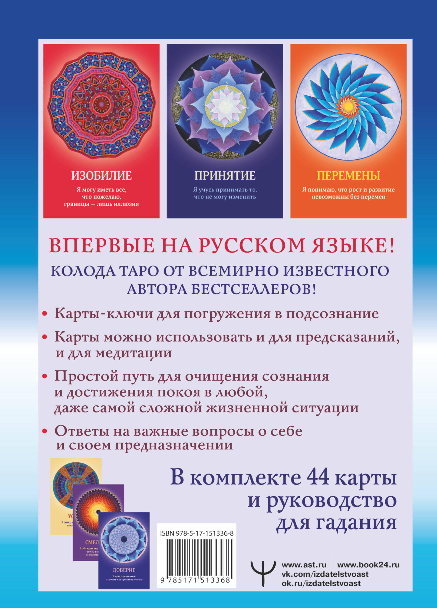 Прощение, Любовь, Сочувствие и многие другие жизненные уроки скрыты в картах-мандалах, которые вы держите в руках. Всемирно известный автор бестселлеров - Джеймс Ван Прааг - представляет свою новую колоду "Путешествие Души". Эти карты - настоящие уроки Вселенной, которые помогут вам погрузиться в подсознание, настроить нужный энергетический канал, познать себя, исследовать свои желания и мысли, обрести гармонию с разумом и телом. В комплект входят 44 карты и брошюра-инструкция с подробным описанием способов гадания и значений карт. Поэтому колодой смогут легко пользоваться не только опытные тарологи, но и новички в Таро. Карты и брошюра упакованы в большую подарочную коробку.| Издательство | ИЗДАТЕЛЬСТВО "АСТ" |