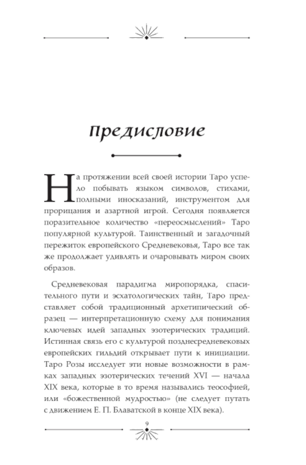 «Таро розы» Найджела Джексона - колода, созданная под влиянием образов и символов алхимии, средневекового герметизма и символизма. Она сочетает в себе элементы и традицию Таро Уэйта со средневековым очарованием Марсельского Таро. Работая с ней, вы исследуете куртуазные тайны рыцарства и любви, секреты каббалы и алхимии, а также духовную функцию символов Таро, которые являются вратами в пространство между материальной и духовной сферами. Это Таро с мощной энергетикой подойдет для предсказаний и духовных практик.| Издательство | Эксмо |