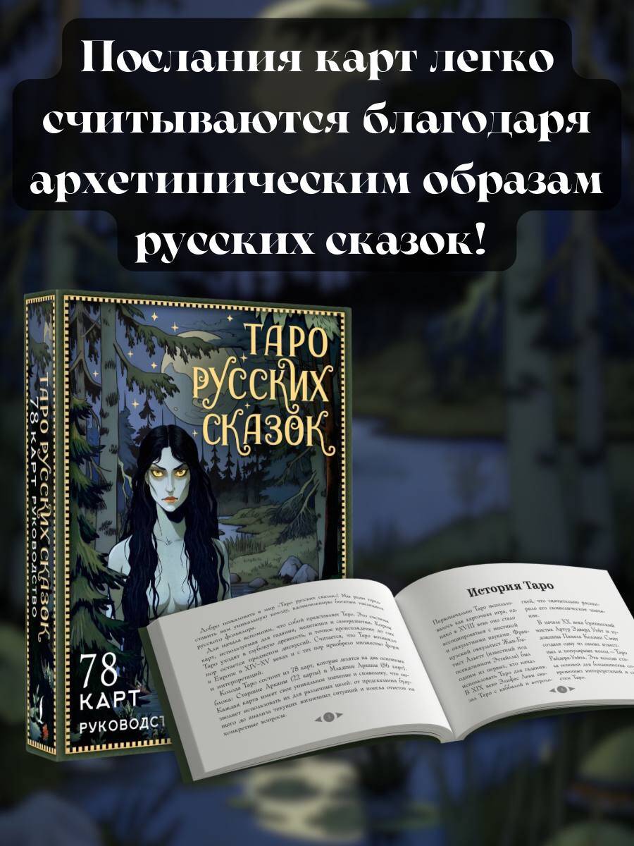 "Таро русских сказок" - это магическая колода, где классическая система Уэйта оживает в образах русского фольклора и славянской мифологии. В этих 78 картах - 22 Старших и 56 Младших Арканах - живут герои, волшебные существа и чудесные предметы, знакомые с детства. Каждый Аркан здесь рассказывает свою историю и передает свою мудрость, предлагая интуитивное понимание через архетипы русских сказок. В этой колоде древние символы Таро переплетаются с духом народных преданий, создавая уникальное пространство для познания себя и мира. Подарочная коробка с подробной брошюрой-инструкцией внутри позволит совершить полное погружение в мир мистического фольклора.| Издательство | Издательство "АСТ" |