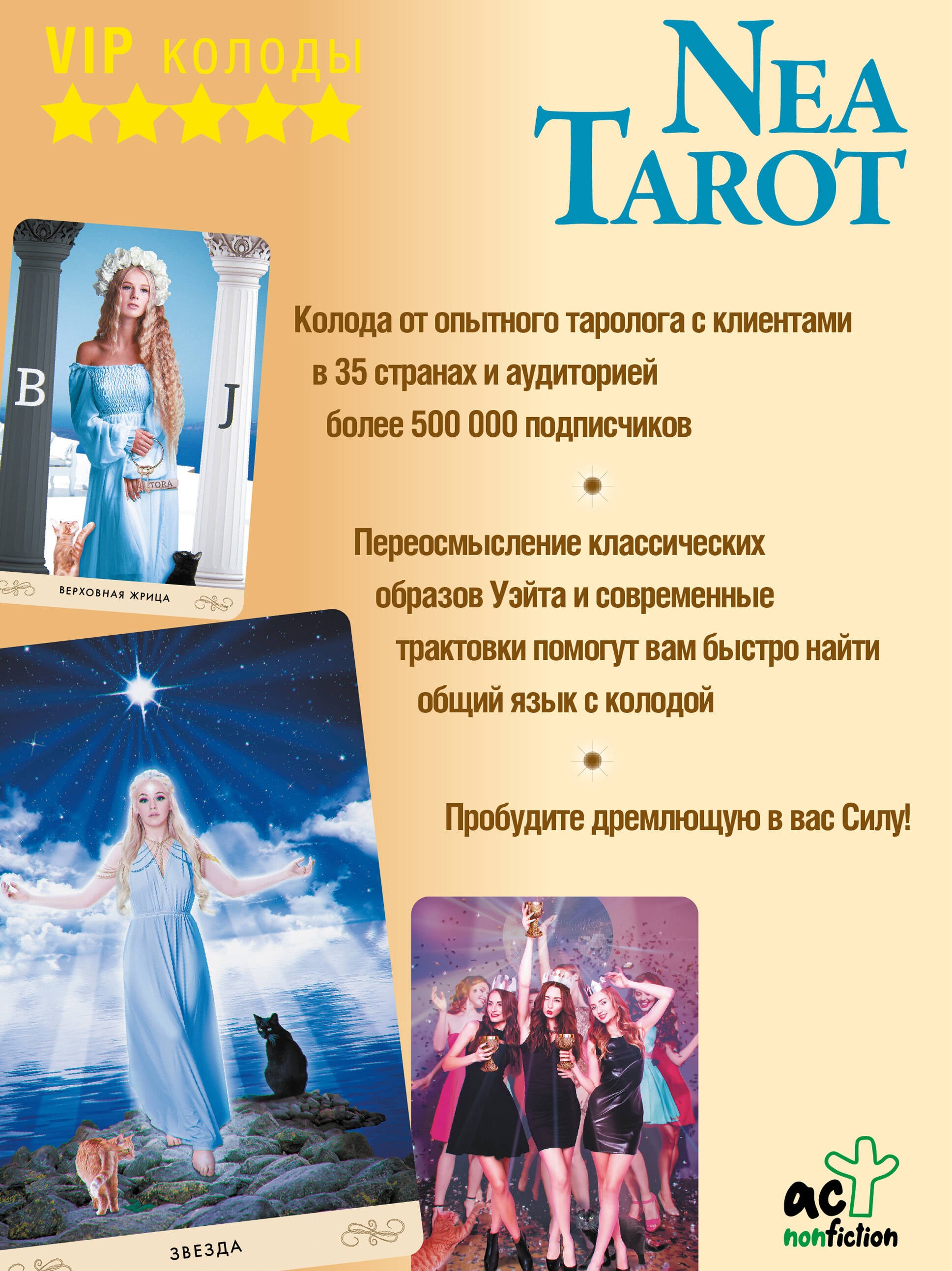 Nea - таролог с клиентами в 35 странах и аудиторией более 500 000 подписчиков, эзотерик, эмотолог, автор четырех колод метафорических карт. Таро откроет силу, которая дремлет в вас и жаждет вырваться наружу, чтобы изменить настоящее и заглянуть в будущее. В колоде "Таро: Сила Ведьмы" эзотерические знания сплетаются с психологическими приемами, что позволяет еще глубже погрузиться в древнюю магию Таро. Каждая карта содержит переосмысление классических образов и современные трактовки, благодаря чему новичкам будет легко найти подход к колоде, а опытные тарологи смогут открыть для себя глубинные интерпретации привычных толкований. Вселенная готова давать ответы на любые вопросы. Осмельтесь заглянуть в себя и пробудить силу, о которой вы даже не подозревали. Пробудите дремлющую в вас силу, чтобы познать мудрость Вселенной. • Карты Таро содержат ответ на любой вопрос. • Вы узнаете, что ждет вас в отношениях, карьере, сфере финансов. • Таро убережет от ошибок и поможет принять правильное решение. • Небольшая коробка: внутри 78 карт и руководство с правилами работы, толкованиями и раскладами.| Издательство | ИЗДАТЕЛЬСТВО "АСТ" |