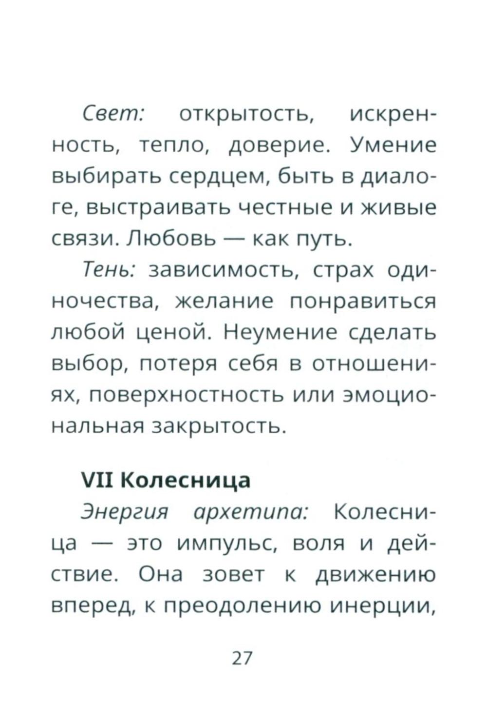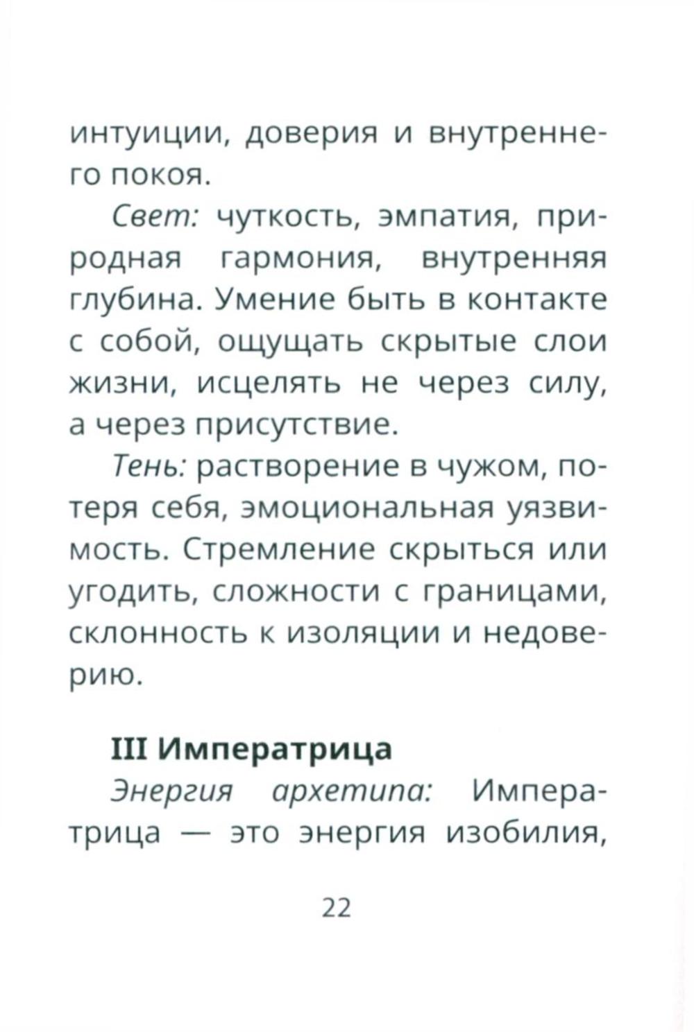 «Таро Свободного духа» - это не просто колода, а источник вдохновения и поддержки. Мия Кристенс и Диана Плисова создали по-настоящему теплую и дружелюбную систему, в которой даже традиционно «трудные» карты (например, Башня или Повешенный) не пугают, а помогают найти выход из затруднительной ситуации. Солнце, часто встречающееся на Арканах, символизирует радость и чувство свободы. Колода основана на системе Уэйта, но адаптирована для современного человека. Знакомые символы здесь дополнены новыми смыслами, а сюжеты карт взяты из повседневности, в них легко узнать себя! Это делает «Таро Свободного духа» идеальным инструментом для тех, кто ценит простоту и ясность. Колода не запутывает намеками - она говорит прямо, а ее светлая энергия чувствуется сразу.