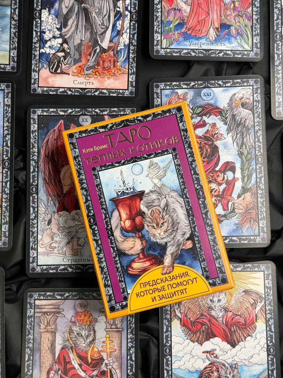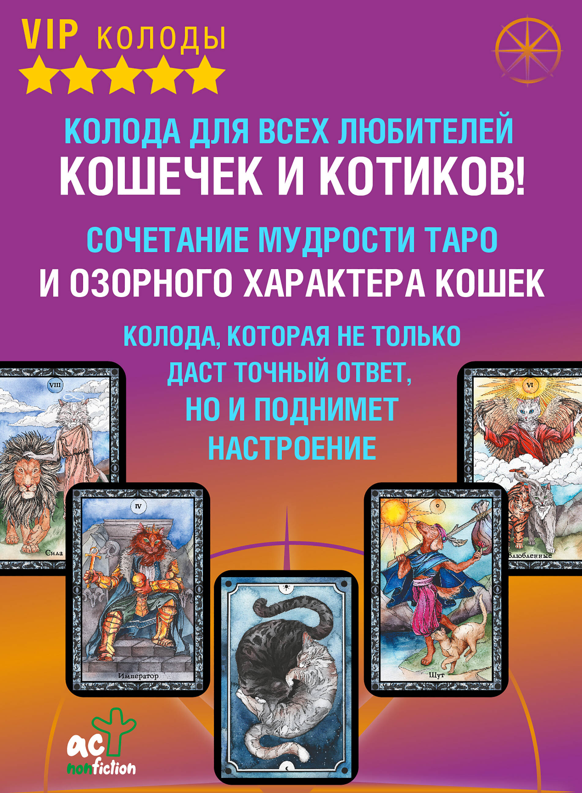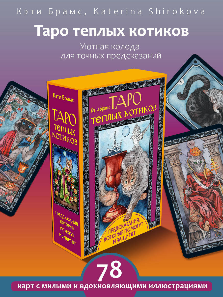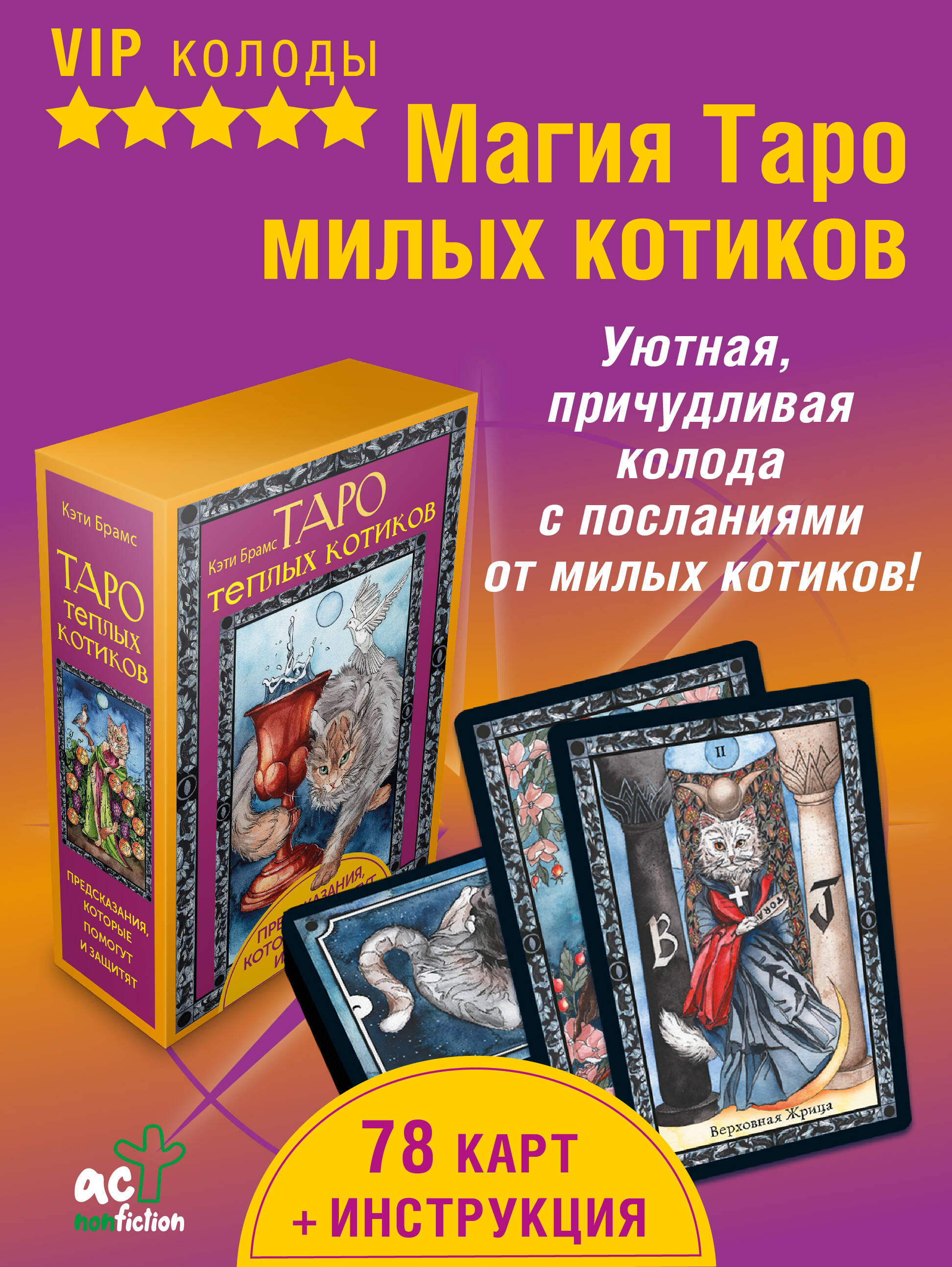 Таро Теплых котиков - уникальная и очаровательная колода, главную роль в которой играют наши милые кошачьи друзья разных окрасов, пород и характеров. Эта причудливая колода сочетает в себе игривый и озорной характер котиков с традиционной символикой Таро Уэйта, поэтому подойдет как новичкам, так и опытным тарологам, а также просто всем любителям этих пушистых, своенравных, но таких притягательных существ. В дополнение к колоде в комплекте вы найдете краткое руководство, где представлены толкования каждой карты. Таро Теплых котиков - это веселый и интересный способ исследовать мир и самого себя, а также найти ответы и получить советы в разных ситуациях. Если вы любитель кошек, энтузиаст Таро или просто хотите внести чуть больше ясности или радости в свою жизнь, то эта колода для вас! Комплект состоит из 78 карт и небольшой брошюры-инструкции. Упакован в коробку под размер карт.| Издательство | ИЗДАТЕЛЬСТВО "АСТ" |