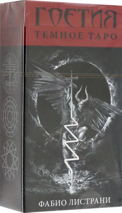 Гоетия - это средневековая магическая традиция вызывания демонов и создания талисманов. Персонажи новой колоды Фабио Листрани взяты автором из Малого Ключа Соломона, но рассматриваются в современном психологическом ключе. Как тьма есть ни что иное, как путь к свету, так и бессознательное есть лишь зеркало сознательного.