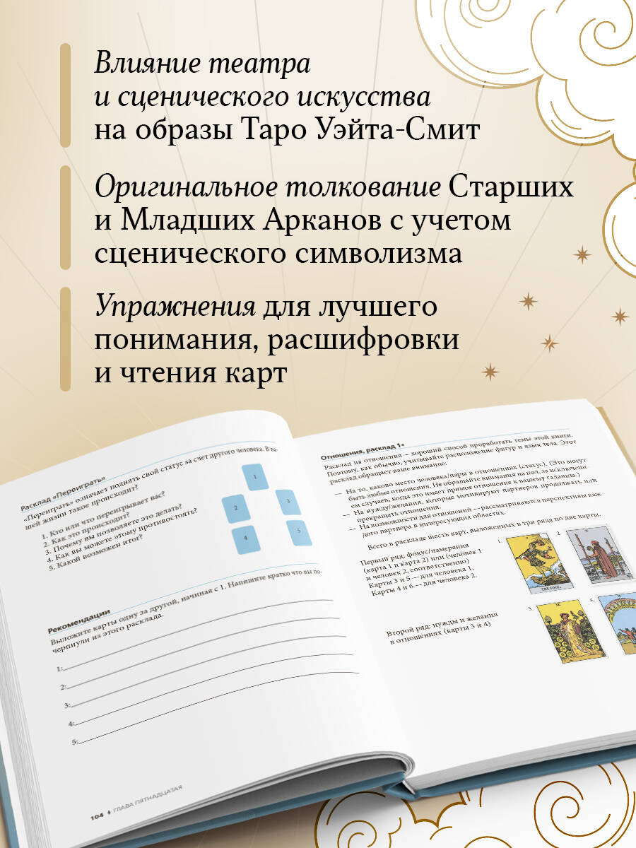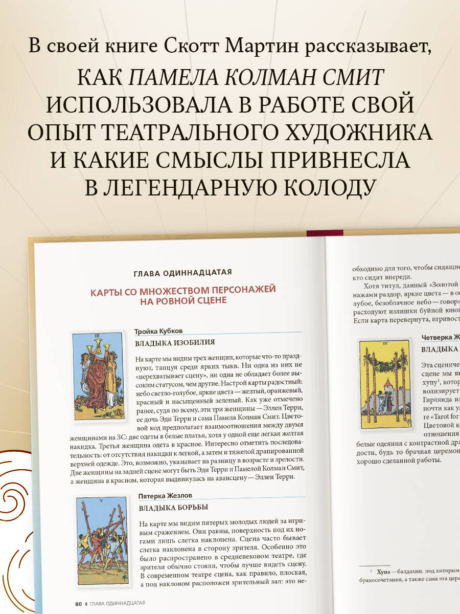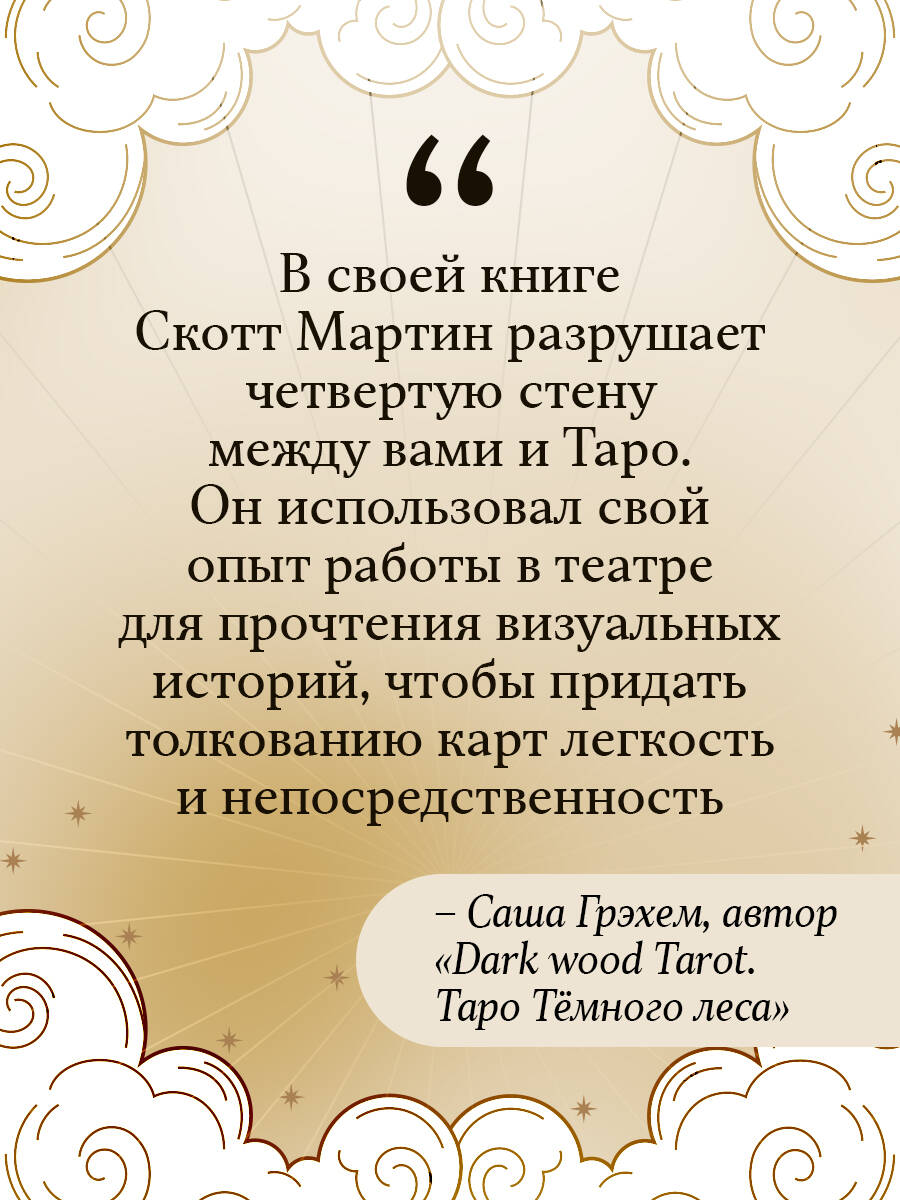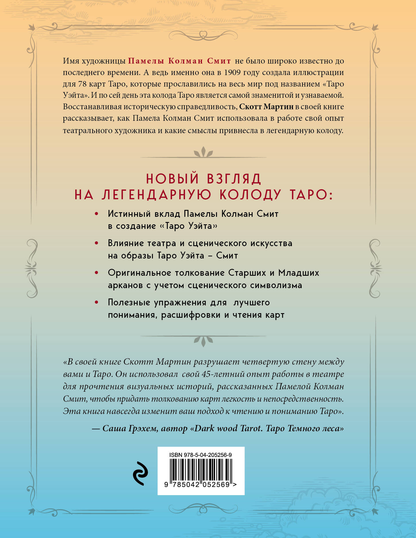 Новый взгляд на легендарную колоду Таро и историю ее создания! До последнего времени имя художницы Памелы Колман Смит не было широко известно. А ведь именно она в 1909 году создала иллюстрации для 78 карт Таро, которые прославились на весь мир под названием «Таро Уэйта». И по сей день эта колода Таро является самой знаменитой и узнаваемой. Восстанавливая историческую справедливость, Скотт Мартин в своей книге рассказывает, как Памела Колман Смит использовала в работе свой опыт театрального художника и какие смыслы привнесла в легендарную колоду. Новый взгляд на легендарную колоду ТАРО: • Истинный вклад Памелы Колман Смит в создание «Таро Уэйта». • Влияние театра и сценического искусства на образы Таро Уэйта-Смит. • Оригинальное толкование Старших и Младших Арканов с учетом сценического символизма. • Полезные упражнения для лучшего понимания, расшифровки и чтения карт. «В своей книге Скотт Мартин разрушает четвертую стену между вами и Таро. Он использовал свой 45-летний опыт работы в театре для прочтения визуальных историй, рассказанных Памелой Колман Смит, чтобы придать толкованию карт легкость и непосредственность. Эта книга навсегда изменит ваш подход к чтению и пониманию Таро». - Саша Грэхем, автор «Dark wood Tarot. Таро Тёмного леса»| Издательство | ООО "Издательство "Эксмо" |