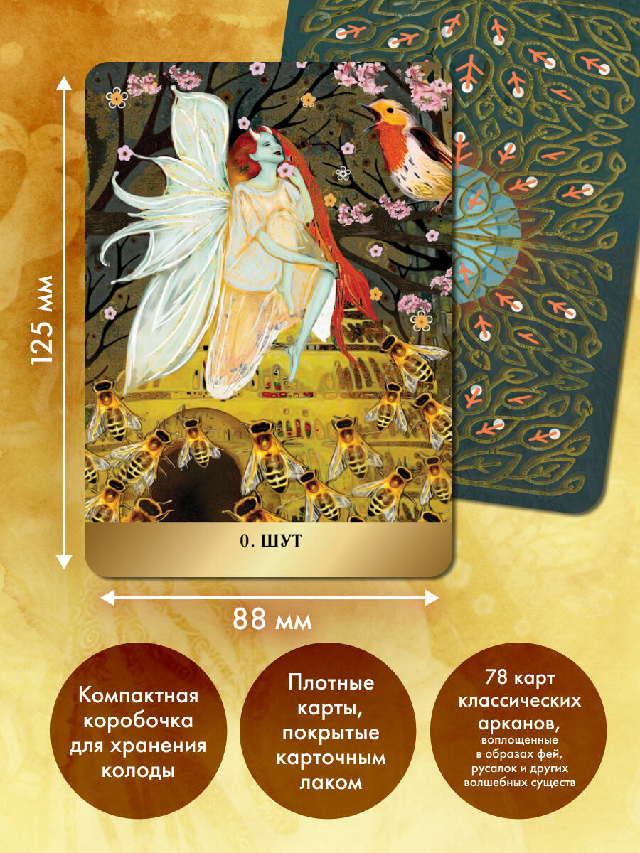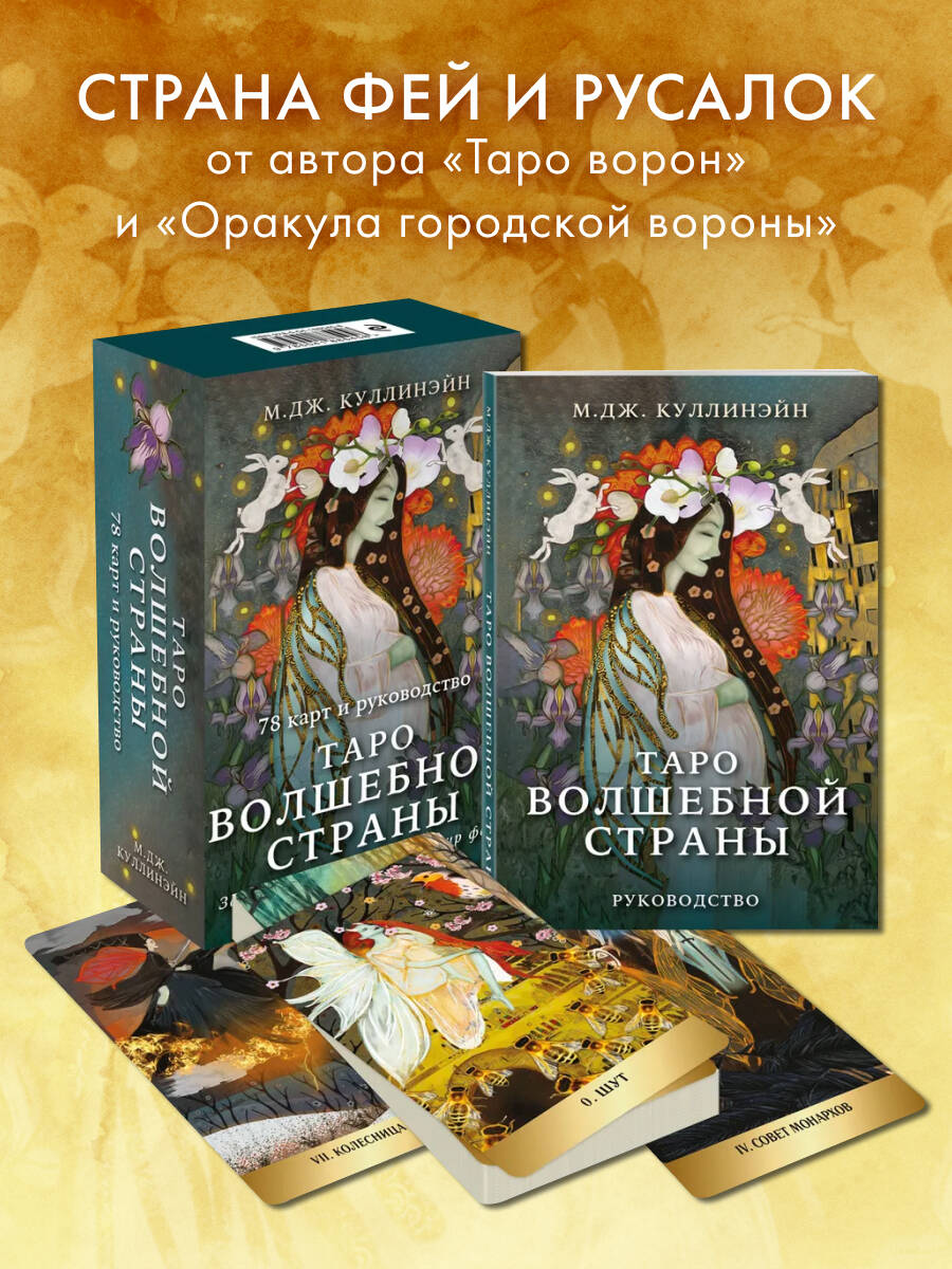 «Таро Волшебной страны» М. Дж. Куллинэйн, автора знаменитого «Таро Ворон», это портал в полный тайн и магии мир Фёрхексы, который населяют феи и русалки. Свое название эта волшебная страна получила от шведского слова förhäxa, что означает «очаровывать» и «заколдовывать», а скандинавский фольклор, предания о феях и работы Густава Климта послужили источником вдохновения для этой колоды. «Таро Волшебной страны» - это: • 78 карт классических арканов Таро, героями которых феи, русалки и другие фантастические создания, населяющие фантастическую страну Фёрхексу. • Авторское руководство с толкованием всех карт колоды и символической историей для каждого Аркана. • Рекомендации по работе с картами. • Несложный расклады для знакомства с колодой. • Плотные карты, покрытые карточным лаком для лучшего скольжения, руководство карманного формата и компактная коробчка. М. Дж. Куллинэйн (она же Марго Джонс) - автор знаменитого «Таро Ворон» и «Оракула Городской вороны». Отмеченная профессиональными наградами художница из Сиэтла, писательница, мать и любительница всего волшебного. М. Дж. училась в Школе дизайна Парсонса, но уникальная манера рассказывать истории через коллажи - ее собственное изобретение и ее страсть на протяжении уже 10 лет.| Издательство | ООО "Издательство "Эксмо" |