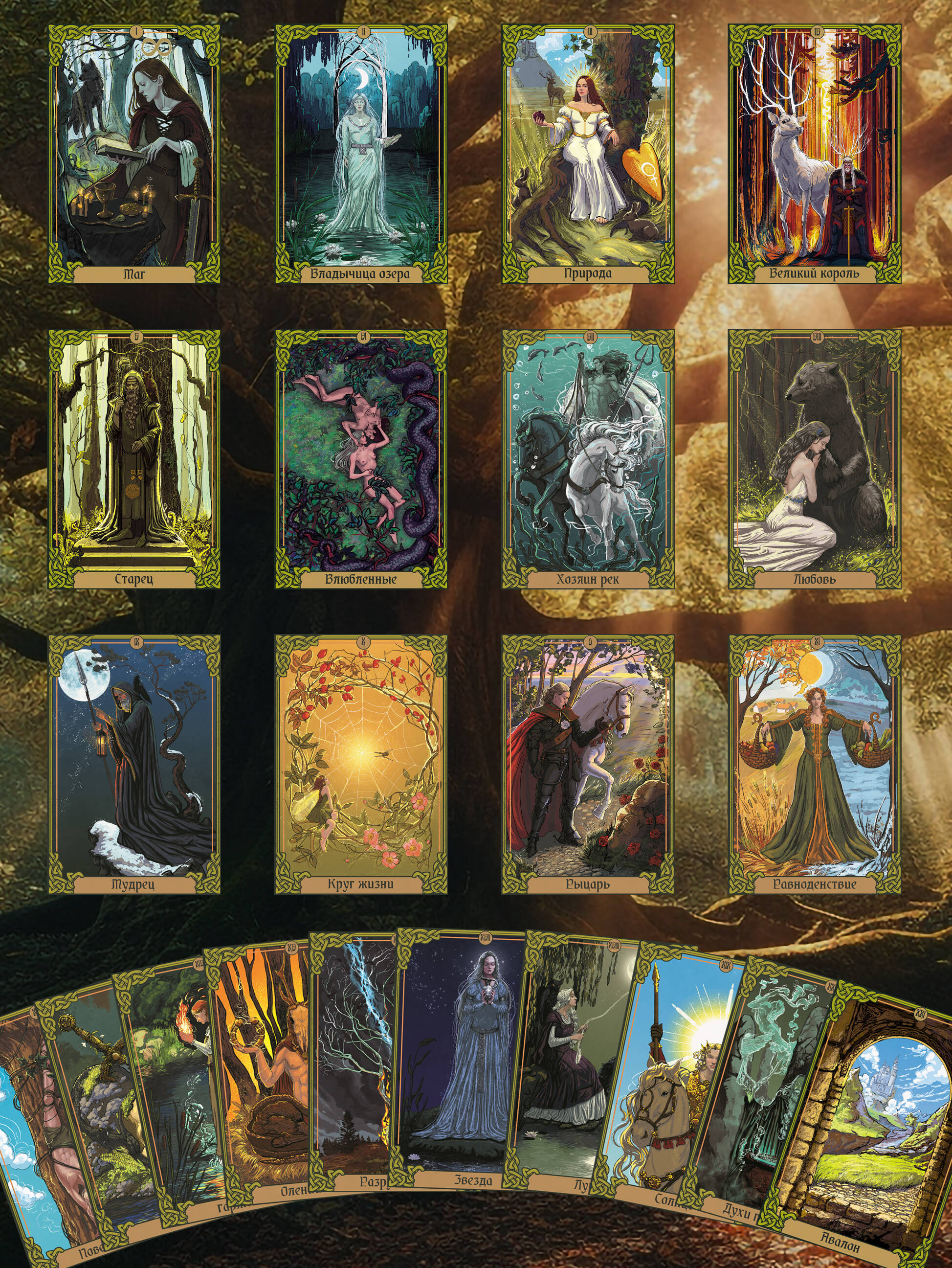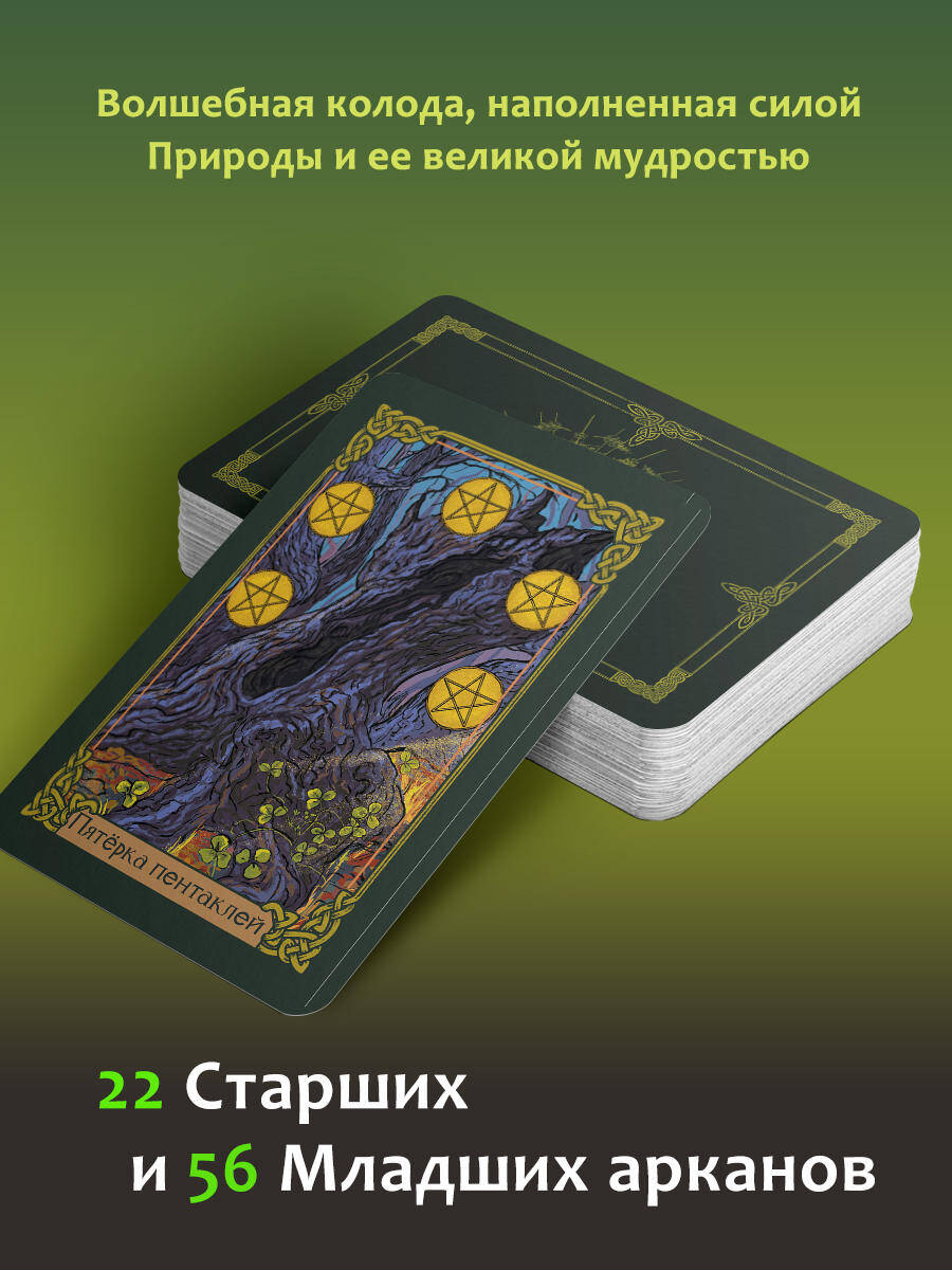 Идя по Таро Зеленого пути, вы никогда не заплутаете. Пусть эта магическая колода станет вашим компасом. В ней настоящее, прошлое и будущее переплетаются между собой, напоминая нам о том, что время - это нить, из которой можно "вязать" события. Значит, можно менять и свойства этой "нити" и использовать ее, чтобы построить ту жизнь, которую вы хотите. Все это делается с помощью специальных магических инструментов. И карты перед вами могут стать одним из них, если вы им позволите. Энергии растений и персонажей из кельтских легенд защитят вас в процессе гадания, помогут усилить связь и приблизить желаемый исход событий. В них вас встретят печальный рыцарь, вечно юная госпожа фэйри и очаровательные шелки. Король Мечей здесь - это король Лир, а Королева Кубков - прекрасная Гвиневра. Все архетипы обладают особой магией, энергией, с которой они смогут точно ответить на ваш вопрос и сказать, как поступить. Колода наполнена силой Природы и ее мудростью. Каждому Младшему Аркану соответствует конкретное растение, которое раскрывает и увеличивает энергию карты. Двойка Пентаклей - нежная азалия, Пятерка Мечей - обманчиво невинный ландыш, а Восьмерка Жезлов - колдовская Матушка-Бузина. Неважно, занимаетесь вы зеленой магией или нет, эти карты дадут вам погрузиться в мир растений, мифов и легенд, полный чудес и ответов на ваши вопросы. Это колода, которая не только дает точные ответы, но и рассказывает историю, одаряя вас энергией тепла и света. Она как отражение самой Матушки-Природы. Разложите карты и найдите ответ на свой вопрос - даже на тот, который так страшно задать. В колоде 78 карт и инструкция, они упакованы в качественную коробку под размер карт.| Издательство | Издательство "АСТ" |