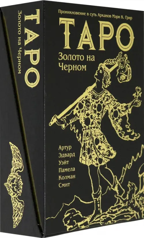 Эта изысканная и впечатляющая своим цветовым сочетанием колода - один из вариантов дизайна знаменитого Таро Райдера-Уэйта, предыдущим из которых было Таро «Чёрное на Золоте». Контурный золотой рисунок карт повторяет работы художницы Памелы Колман Смит. Чёрный фон придаёт картам значительности и выводит на первый план энергию самих Арканов, что позволяет глубже проникнуть в их содержание. 78 карт, размер 70 x120 мм, книга на русском и карты на английском языках.