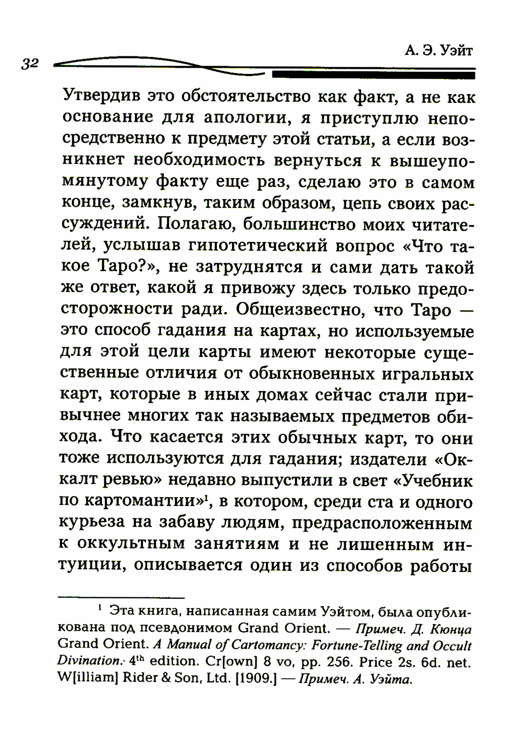 В книгу вошли ранее непубликовавшиеся произведения Артура Эдварда Уэйта (1857-1942). известного английского оккультиста, члена Герметического ордена Золотой Зари и создателя самой популярной колоды Таро. Все они предназначались для ограниченного распространения среди членов оккультных групп и организаций. Эти тексты посвящены Таро: символизму карт и внутренней структуре колоды, искусству построения правильных вопросов при гадании, каббалистическим основам и соответствиям с Древом Сефирот.