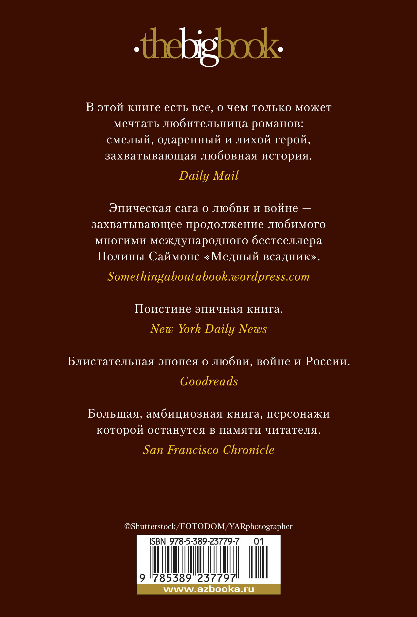 Они встретились и полюбили друг друга в первый день войны. И эта великая разлучница заставила их расстаться на годы - Александра, сына американских коммунистов, переехавших в Советский Союз, и русскую девушку Татьяну. Александр никогда не считал эту страну своей, но пошел воевать за нее, и воевал храбро, однако его арестовали и осудили как шпиона и предателя. Справедливости ждать не приходилось, а иной приговор был ужаснее смерти... Татьяне чудом удалось бежать на Запад. Она начинает новую жизнь в Нью-Йорке, но не в силах забыть любимого, хотя уверена... почти уверена, что он погиб. Между ними словно существует незримая связь. Чтобы найти его след, хрупкая женщина совершает невероятное... Можно ли победить отчаяние и переломить судьбу одной лишь силой любви? "Татьяна и Александр" - второй роман захватывающей трилогии Полины Саймонс, американской писательницы, которая родилась в Советском Союзе в 1963 году и через десять лет вместе с семьей уехала в США. Спустя многие годы Полина вернулась в Россию, чтобы найти материалы для своей книги и вместе с героями пройти сквозь тяжкие испытания, выпавшие на их долю. Книга выходит в новом переводе.| Издательство | Азбука-Аттикус Издат.группа ООО |