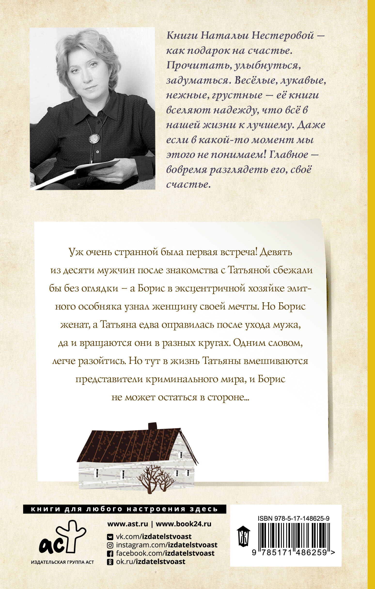 Уж очень странной была первая встреча! Девять из десяти мужчин после знакомства с Татьяной сбежали бы без оглядки - а Борис в эксцентричной хозяйке элитного особняка узнал женщину своей мечты. Но Борис женат, а Татьяна едва оправилась после ухода мужа, да и вращаются они в разных кругах. Одним словом, легче разойтись. Но тут в жизнь Татьяны вмешиваются представители криминального мира, и Борис не может остаться в стороне...| Издательство | АСТ |