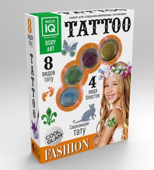 Набор для создания временных татуировок Fashion украсит как девочку пяти лет, так и девушку школьного возраста. В упаковке представлены все необходимые атрибуты для создания красивых, эффектных рисунков на теле. Девочки смогут подбирать тату и варьировать их с цветами, в данном комплекте их четыре - синий, зеленый, розовый и золотой. Набор Fashion - это забавные кошечки, волшебные бабочки и другие интересные изображения и изумительные узоры. Все материалы, используемые в комплекте, имеют высокое качество, а соответственно, абсолютно безопасны для здоровья ребенка. Комплект: 4 баночки с блестками, кисточка, наклейки-трафареты, основа для тату. Возраст: 5+.| Издательство | Галилей ООО |
