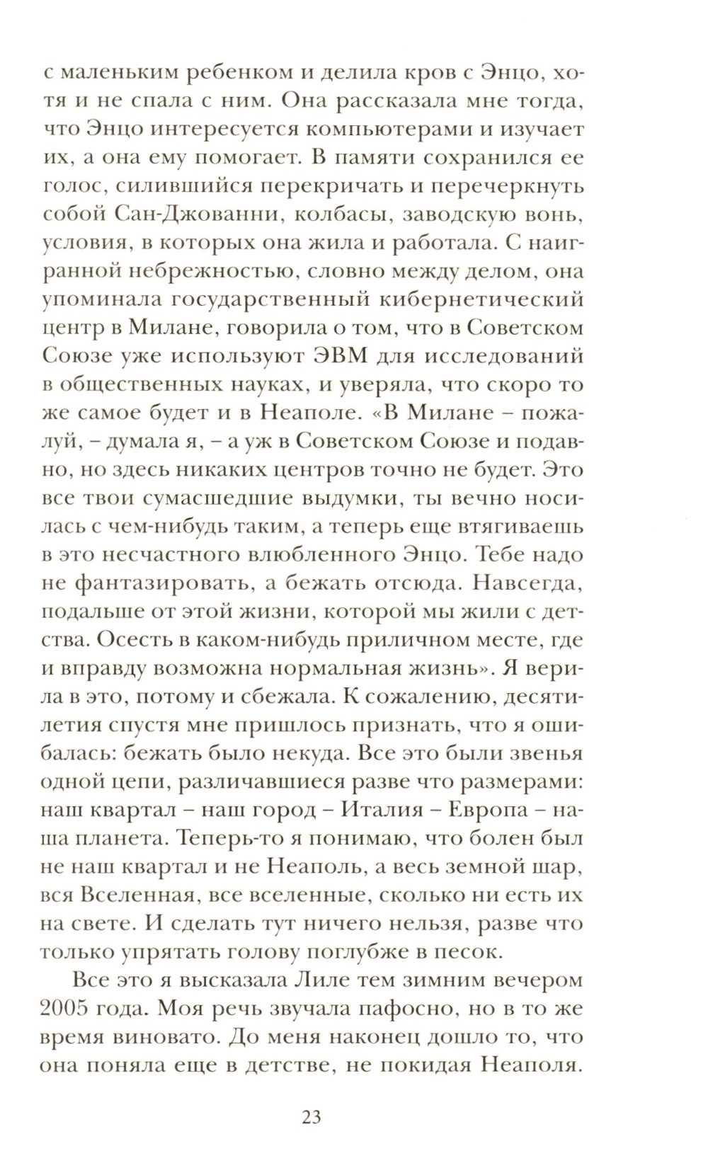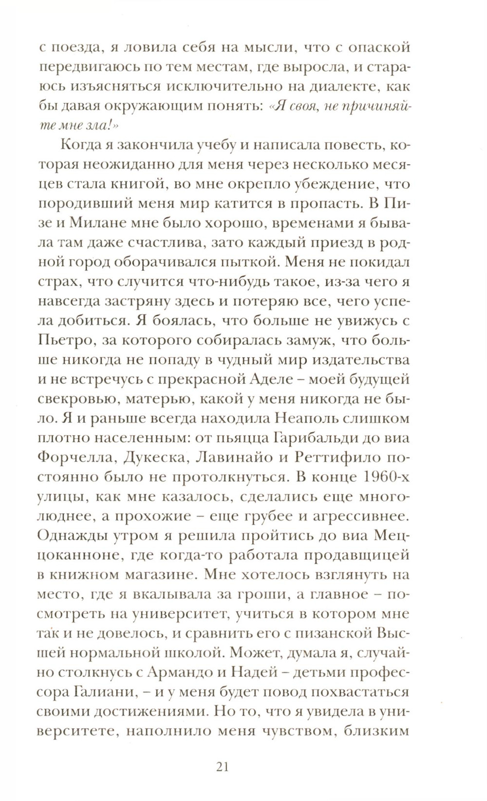 Действие третьей части неаполитанского квартета, названного «лучшей литературной эпопеей современности», происходит в конце 1960-х и в 1970-е годы. История дружбы Лену Греко и Лилы Черулло продолжается на бурном историческом фоне: студенческие протесты, уличные столкновения, растущее профсоюзное движение... Лила после расставания с мужем переехала с маленьким сыном в район новостроек и работает на колбасном заводе. Лену уехала из Неаполя, окончила элитный колледж, опубликовала книгу, готовится выйти замуж и стать членом влиятельного семейства. Жизнь разводит их все дальше, они становятся друг для друга лишь голосами на другом конце провода. Выдержат ли их отношения испытание переменами?| Издательство | Синдбад |