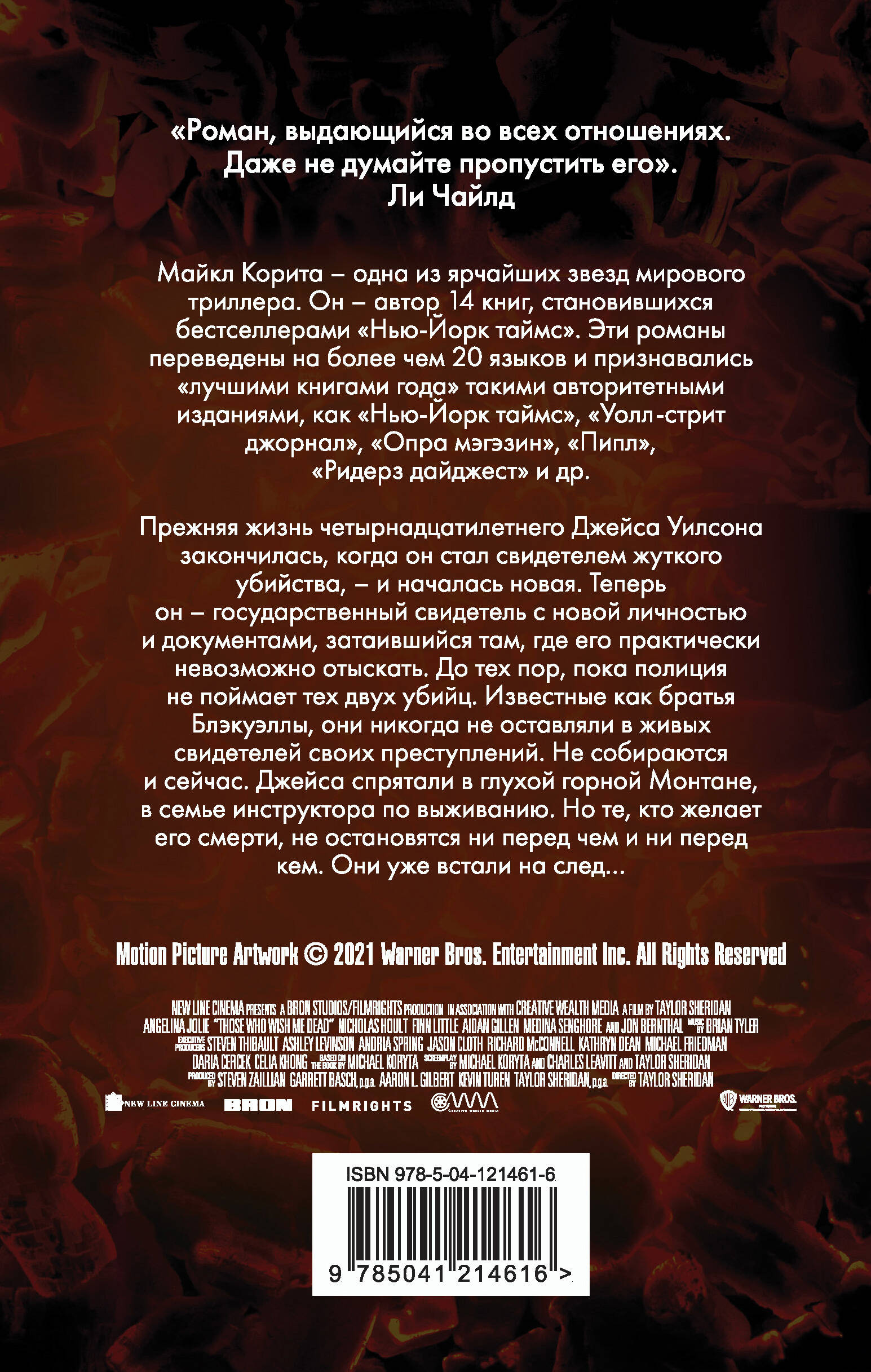 Мировая кинопремьера! Захватывающий триллер, легший в основу кинодрамы С АНДЖЕЛИНОЙ ДЖОЛИ. Майкл Корита - одна из ярчайших звезд мирового триллера. Он - автор 14 книг, становившихся бестселлерами «Нью-Йорк Таймс». Их высоко ценят такие гиганты жанра, как Стивен Кинг, Ли Чайлд, Майкл Коннелли, Дин Кунц, Джеймс Паттерсон, Деннис Лихейн и др. Эти романы переведены более чем на 20 языков и признавались «Лучшими книгами года» такими авторитетными изданиями, как «Нью-Йорк Таймс», «Уолл-стрит джорнал», «Опра мэгэзин», «Пипл», «Ридерз дайджест» и др. Прежняя жизнь четырнадцатилетнего Джейса Уилсона закончилась, когда он стал свидетелем жуткого убийства, - и началась новая. Теперь он - государственный свидетель с новой личностью и документами, затаившийся там, где его практически невозможно отыскать. До тех пор, пока полиция не поймает тех двух убийц. Известные как братья Блэкуэллы, они никогда не оставляли в живых свидетелей своих преступлений. Не собираются и сейчас. Джейса спрятали в глухой горной Монтане, в семье инструктора по выживанию. Но те, кто желает его смерти, не остановятся ни перед чем и ни перед кем. Они уже встали на след… «Читать Майкла Кориту - все равно что входить в быструю реку: никогда не знаешь, куда тебя унесет течением». - Джон Харт «Роман, выдающийся во всех отношениях. Даже не думайте пропустить его». - Ли Чайлд «Это мастер». - Стивен Кинг «Стройный, стремительный триллер… Просто класс». - New York Times «Майкл Корита - настоящий мастер в нагнетании саспенса». - Нельсон Демилль «Корита - один из самых-самых лучших». - Майкл Коннелли| Издательство | ООО "Издательство "Эксмо" |