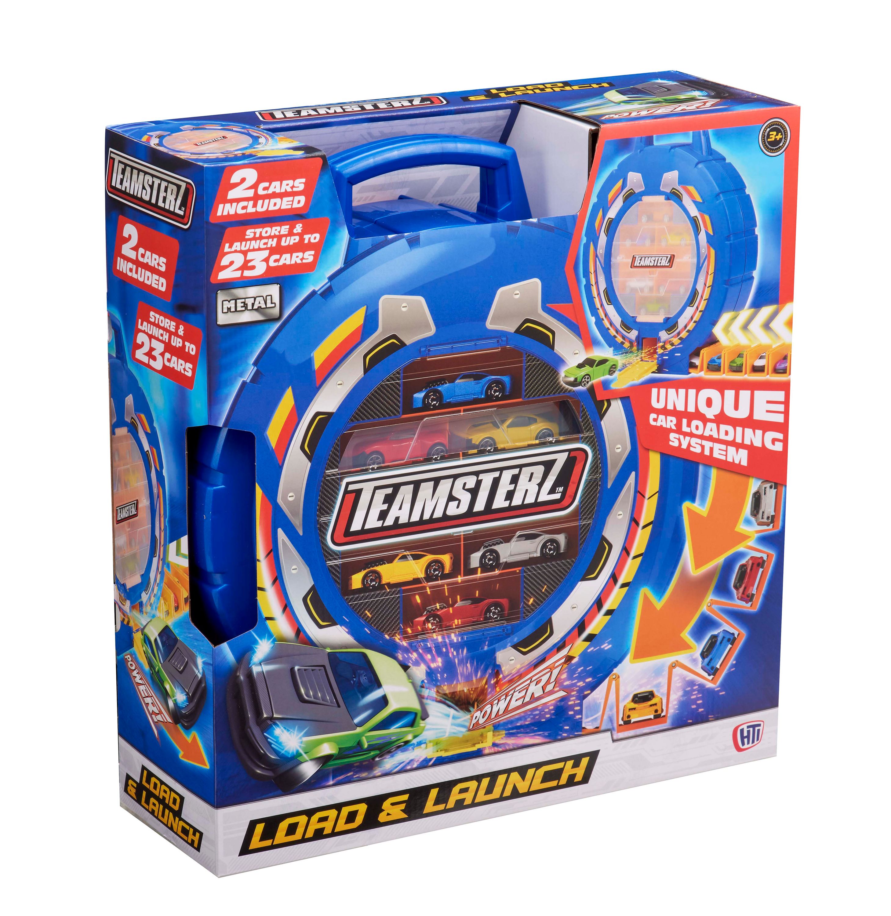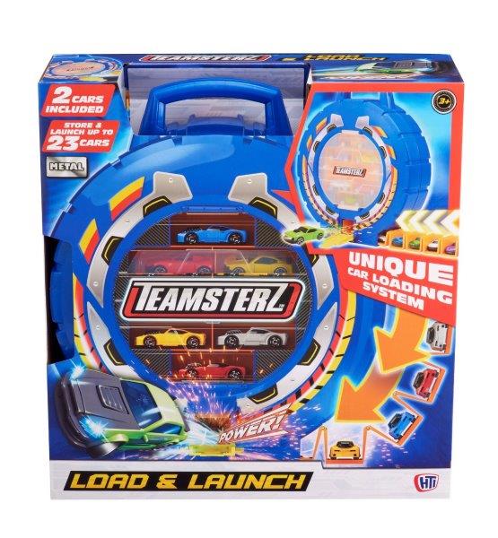 Teamsterz предлагает широкий выбор коллекционных металлических автомобилей, гаражей и игровых наборов, световых и звуковых транспортных средств и наборов треков. Ассортимент, доступный по всему миру, сочетает в себе высокие цены и качество изготовления, обеспечивая высокий уровень детализации и большую игровую ценность. Транспортируйте свои автомобили с помощью гаража Teamsterz! Этот кейс в форме колеса, вмещающий до 23 автомобилей, можно использовать не только для хранения, но и как автомобильную пусковую установку! Поверните шестеренку, чтобы открыть уникальную систему загрузки автомобилей, загрузите до 15 автомобилей, опустите дверцу и нажимая кнопку запуска быстро "выстреливайте" автомобилями одним за другим! Для ещё более увлекательной игры данный набор можно соединить с каким-либо другим игровым набором Teamsterz. Также, используя ручку для переноски ребёнок сможет не только дома играть с гаражом , но и брать его собой куда угодно! Идеальный подарок для юного автолюбителя! Входящие в комплект металлические автомобили Teamsterz выполнены в масштабе примерно 7,5 см, имеют высококачественный литой корпус и независимые свободно движущиеся колеса.