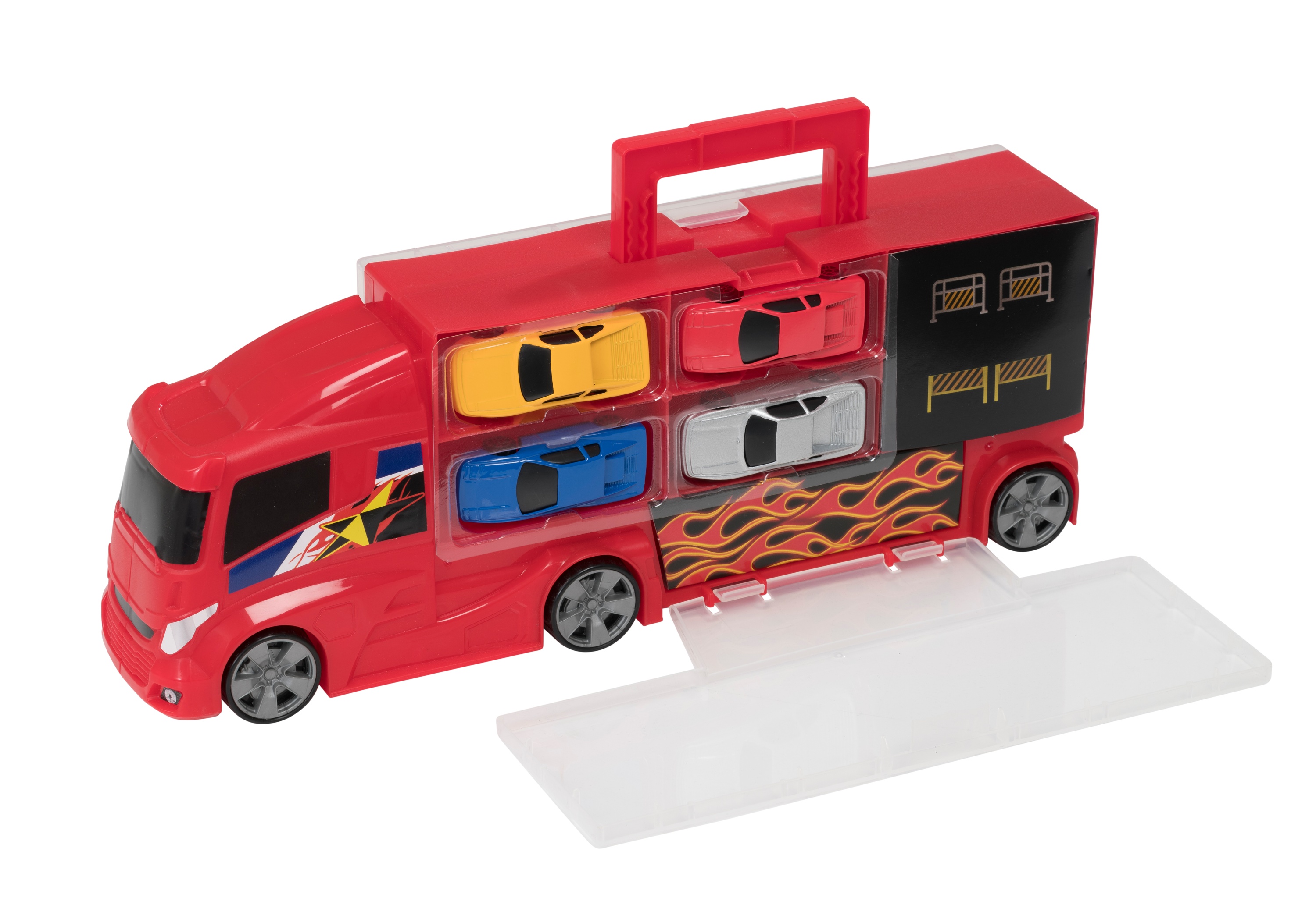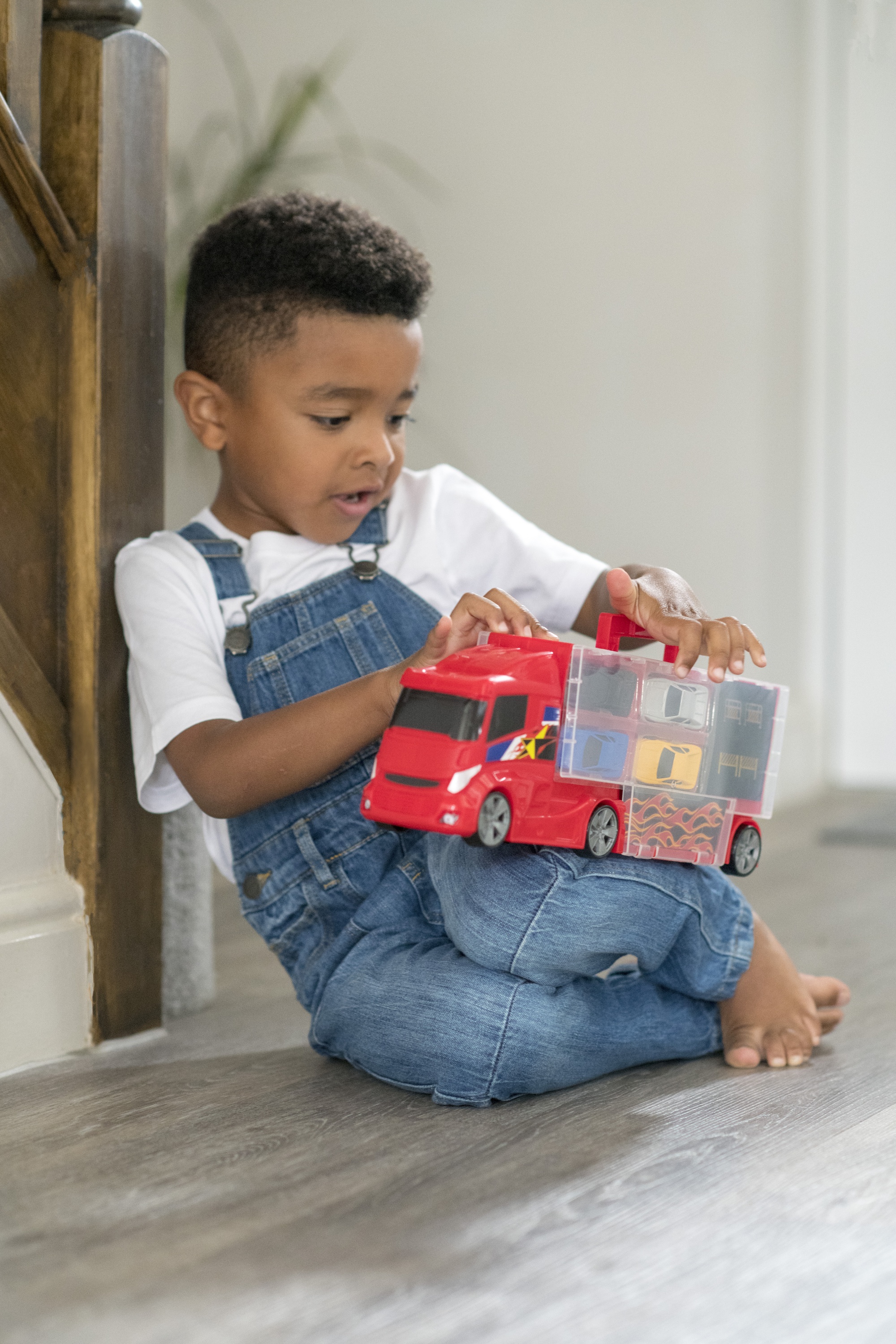 Кейс Teamsterz с 4 автомобилями - идеален для хранения и переноски коллекции автомобилей вашего юного автолюбителя! Этот яркий и прочный кейс легко переносить и толкать - он оснащен свободно движущимися колесами, ручкой для переноски, а так же имеет достаточно места для хранения 12 автомобилей! Такой подарок точно обеспечит нескончаемое удовольствие от игры с машинками! Помогает развитию социальных навыков, воображения и мелкой моторики у ваших малышей. Входящие в комплект модельки автомобилей Teamsterz имеют масштаб примерно 7,5 см, высококачественный литой корпус и независимые свободно движущиеся колеса.
