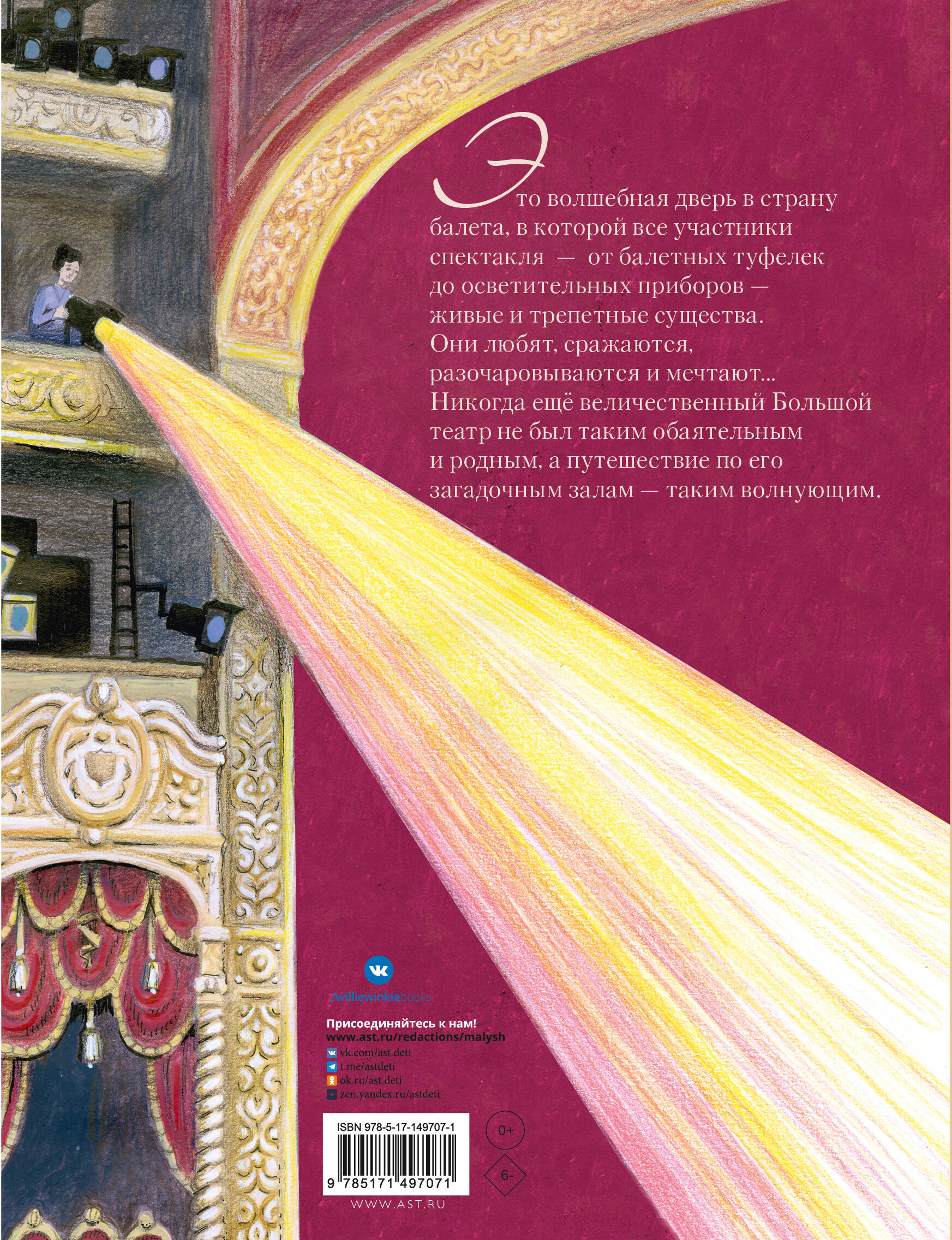 Нежные, лёгкие и волшебные сказки от знаменитой балерины, народной артистки России Илзе Лиепы. Хотелось ли тебе когда-нибудь заглянуть хотя бы одним глазком в невероятный мир балета? Всё здесь - от пуант до ярких софитов - оживает, стоит лишь приоткрыть тяжёлый бархатный занавес. В книгу вошли следующие сказки: Туфельки; Лягушка Балерушка; Когда ложи поспорили; Горячее сердце; Бабушкина сказка; Война котов и машин; Как Юбочка влюбилась в Колет; Мышь-критикан; Булочки. Илзе Лиепа - балерина, актриса театра и кино. Лауреат национальной театральной премии "Золотая маска".| Издательство | АСТ |