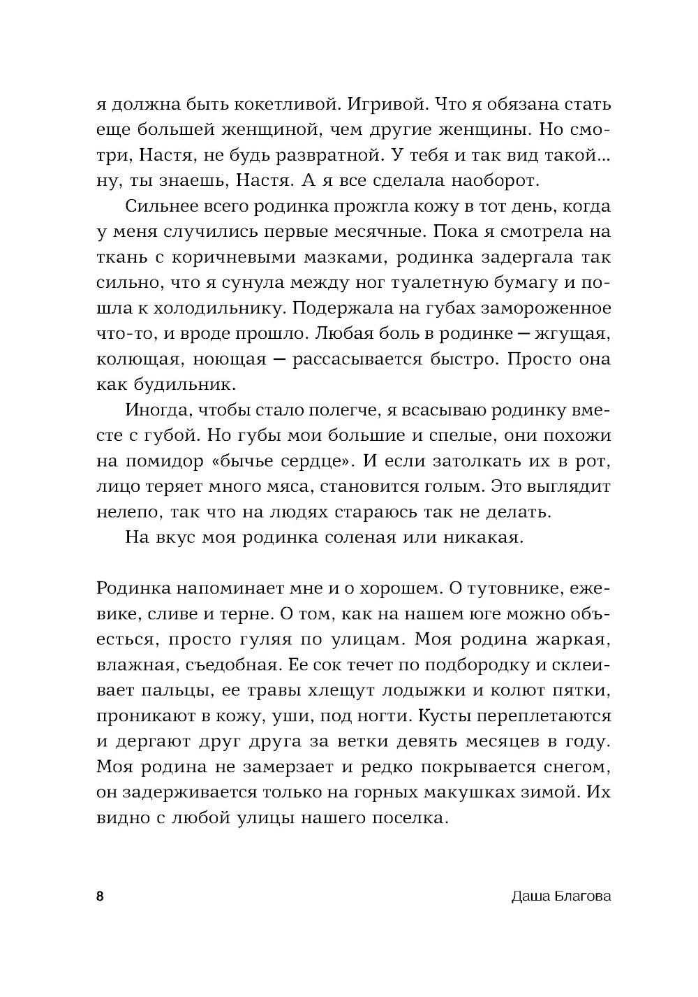 Новый роман Даши Благовой, номинантки премий «Национальный бестселлер» (2022) и «Ясная Поляна» (2023), - это история взросления, поиска и обретения себя. Настя выросла в небольшом южном городе, долго и упорно училась, поступила на журфак МГУ - и теперь пытается встроиться в новую, красивую и интересную, но совсем другую жизнь. Оторвавшись от семьи, она стремится найти свое место, но все больше ощущает себя одинокой, глупой и провинциальной. Дружба с красивой и успешной подругой поначалу кажется спасительной - но оборачивается для нее болезненной зависимостью. В унылых коридорах и тусклых комнатах общежития Настя проживает, кажется, худшие дни своей жизни и все больше погружается в отчаяние и депрессию. Только любовь и поддержка близких, осознание собственной идентичности помогут обрести опору и уверенность, а стремление помочь другим даст надежду на обретение внутреннего смысла.| Издательство | Альпина |