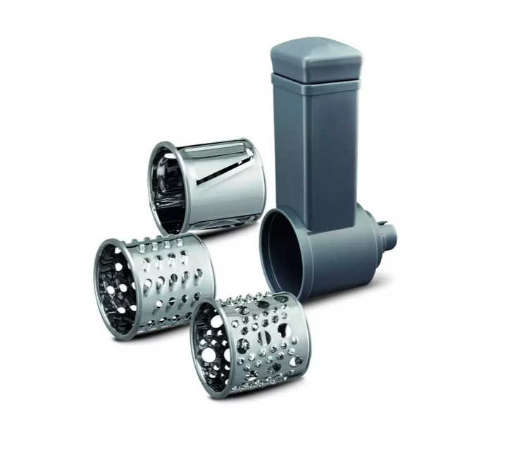 Комплектация: 2 решетки, 3 терки, насадка для колбас, насадка для пюре