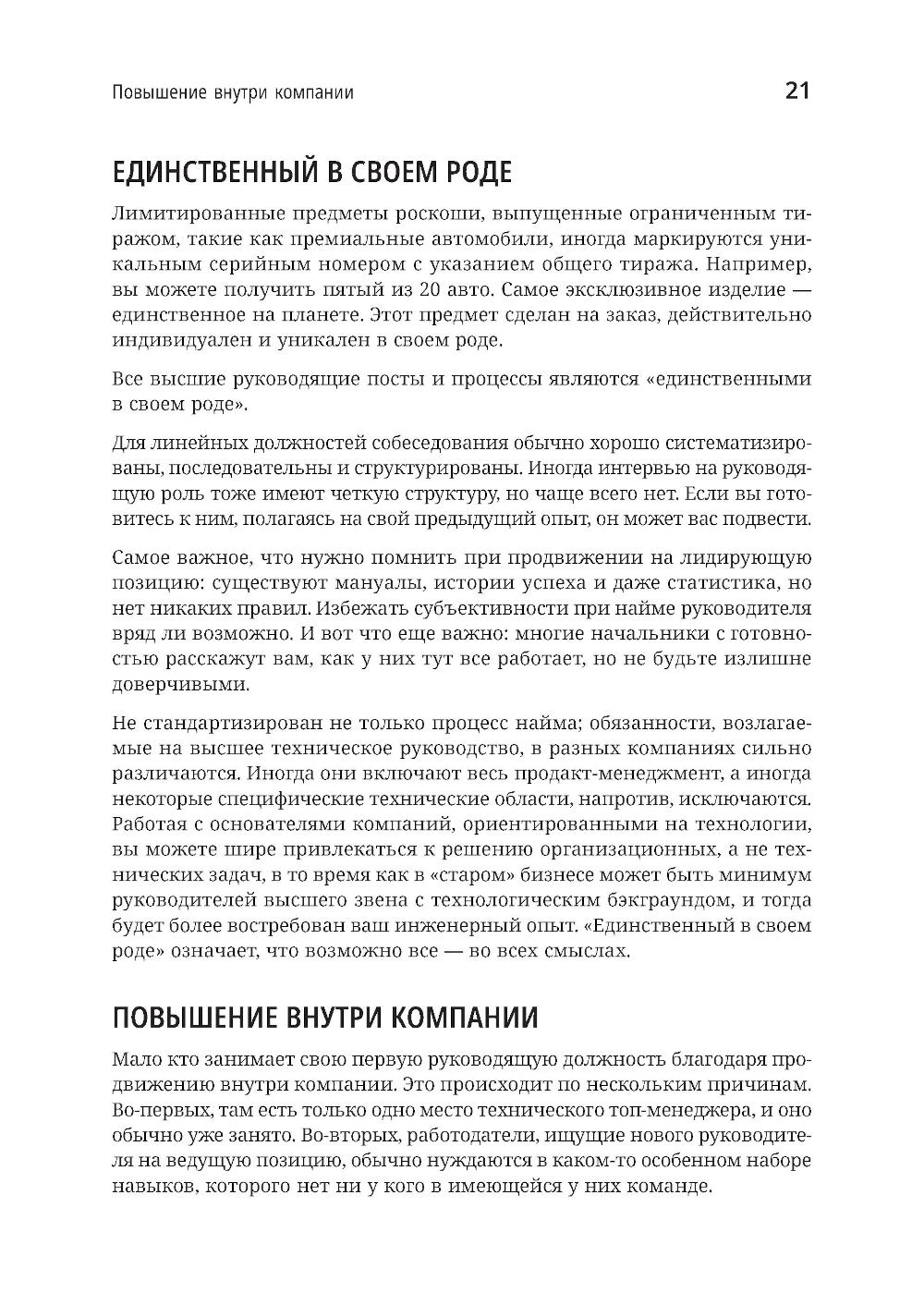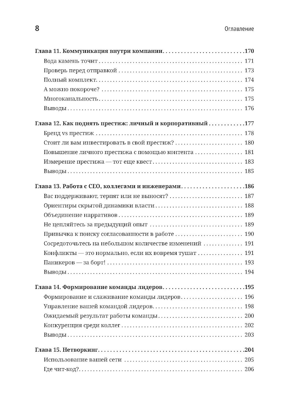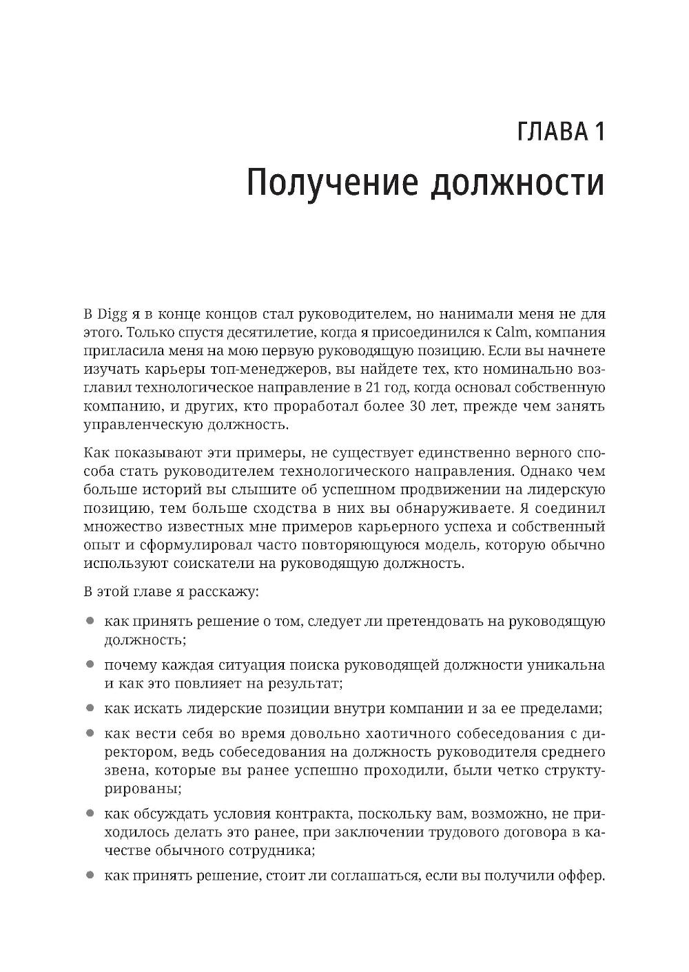 Технический директор сталкивается с особыми вызовами в одиночку. Многие, с энтузиазмом начав свою первую роль на этом уровне, покидают ее разочарованными, столкнувшись со сложностью задач и необходимостью осваивать новые навыки. Это практическое руководство для тех, кто переходит или уже работает на высших руководящих позициях в инженерных и технологических командах. Книга фокусируется на ключевых задачах технического директора - выстраивании стратегии и эффективном управлении командами разработки. Автор не дает универсальных ответов, но помогает понять суть сложнейших проблем, с которыми сталкиваются технические директора (CTO) и руководители инженерного направления, и предлагает как минимум один проверенный подход к решению каждой из них.