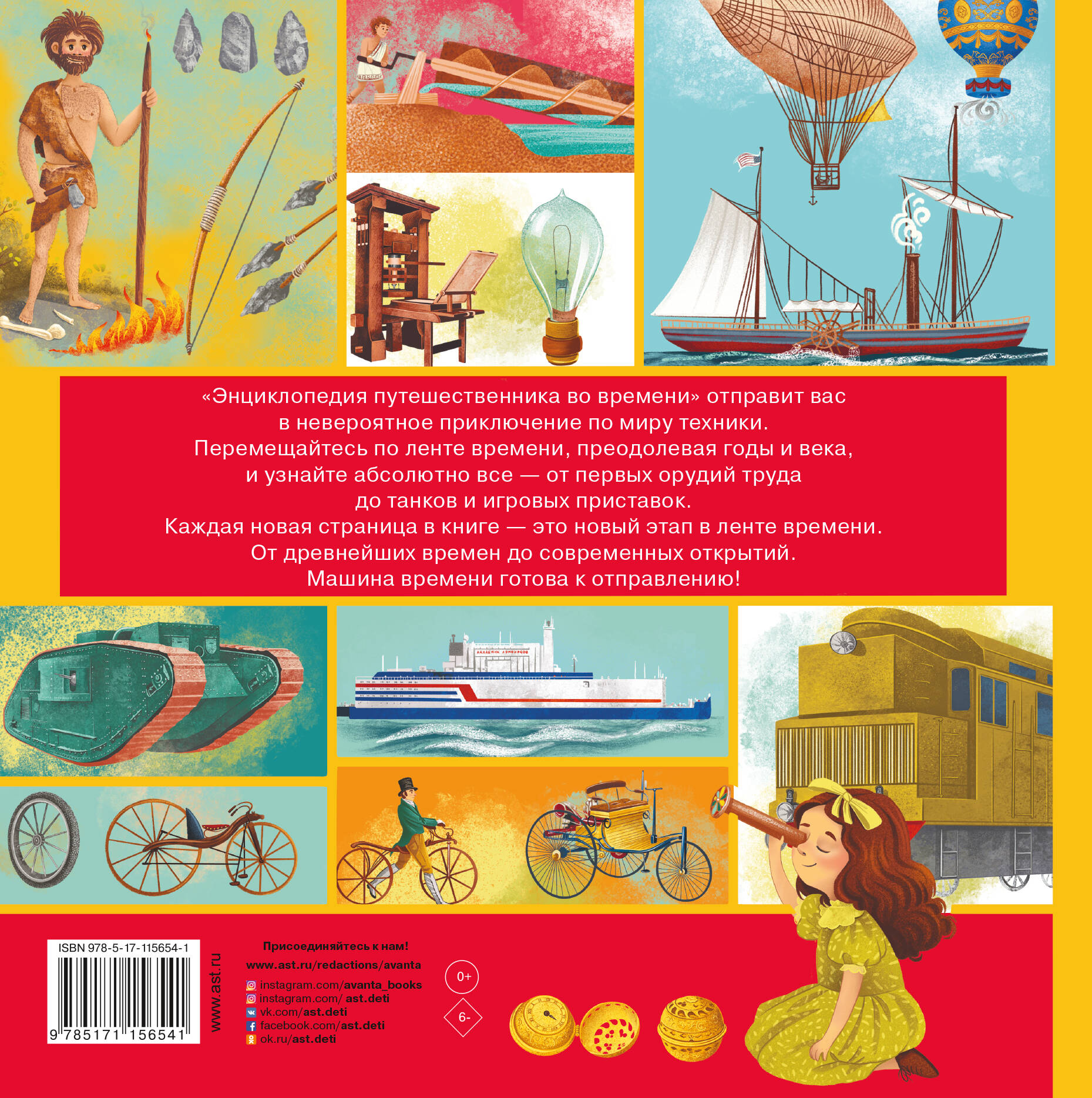 «Энциклопедия путешественника во времени» отправит вас в невероятное приключение по миру техники. Перемещайтесь по ленте времени, преодолевая годы и века, и узнайте абсолютно все - от первых орудий труда до танков и игровых приставок. Каждая новая страница в книге - это новый этап в ленте времени. От древнейших времен до современных открытий. Машина времени готова к отправлению!| Издательство | ИЗДАТЕЛЬСТВО "АСТ" |