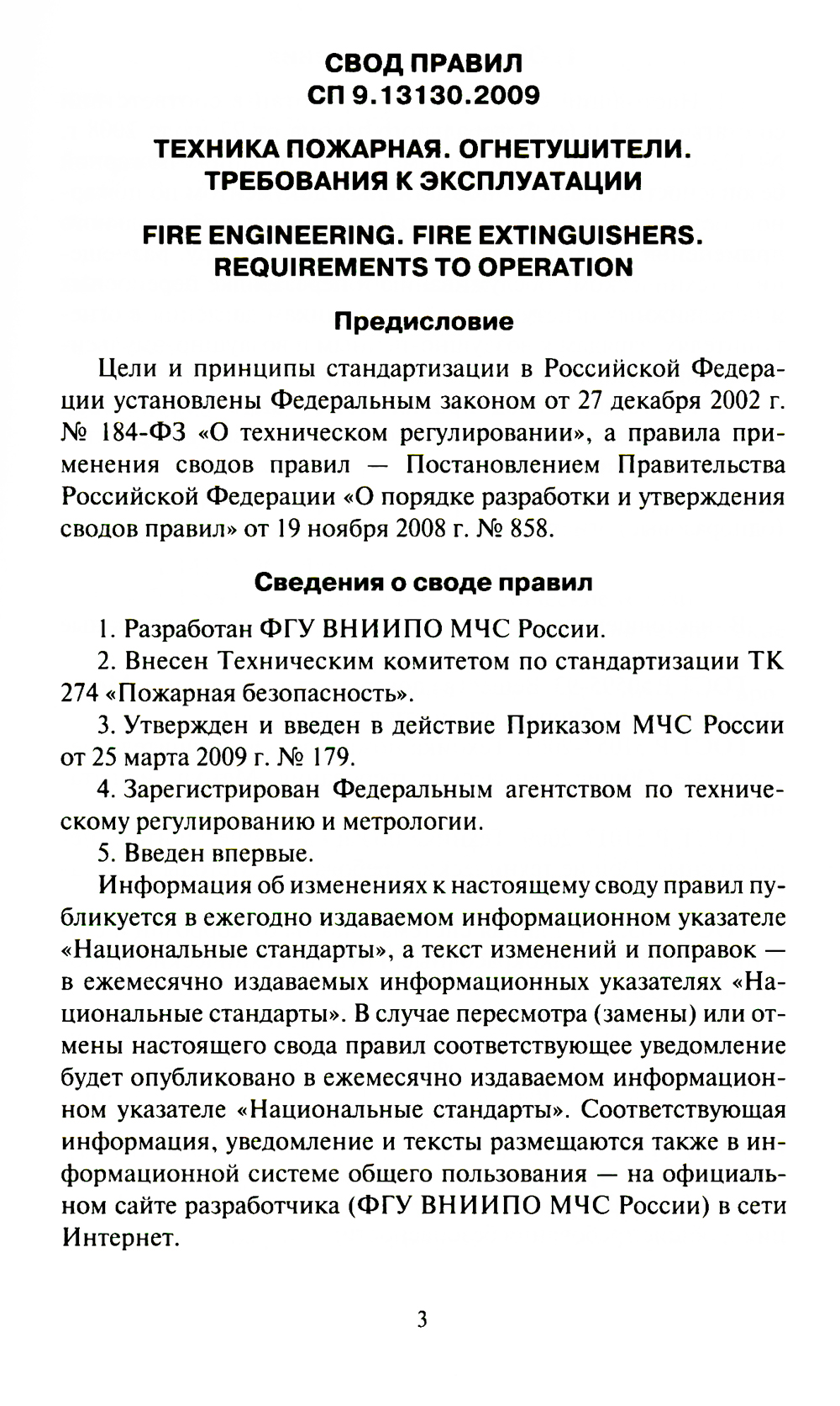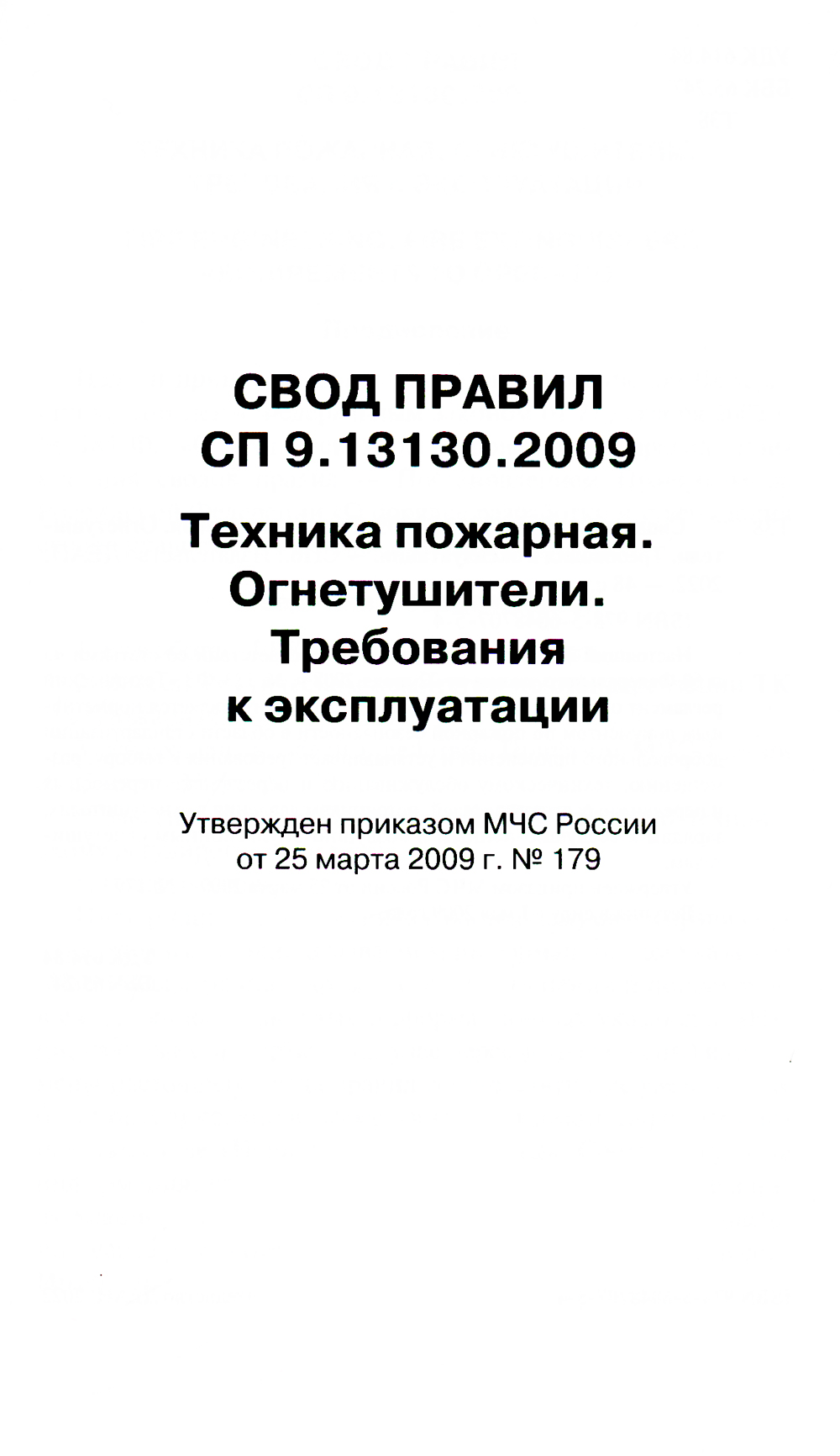 Настоящий свод правил разработан в соответствии со статьями 43 и 60 Федерального закона от 22 июля 2008 г. № 123-ФЗ «Технический регламент о требованиях пожарной безопасности», является нормативным документом по пожарной безопасности в области стандартизации добровольного применения и устанавливает требования к выбору, размещению, техническому обслуживанию и перезарядке переносных и передвижных огнетушителей, источникам давления в огнетушителях, зарядам к воздушно-пенным и воздушно-эмульсионным огнетушителям. Утвержден приказом МЧС России от 25 марта 2009 г. № 179. Вступил в силу с 1 мая 2009 года.| Издательство | Деан |