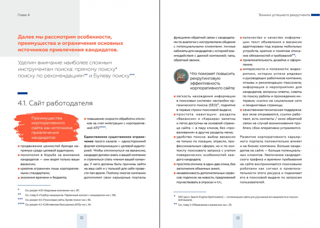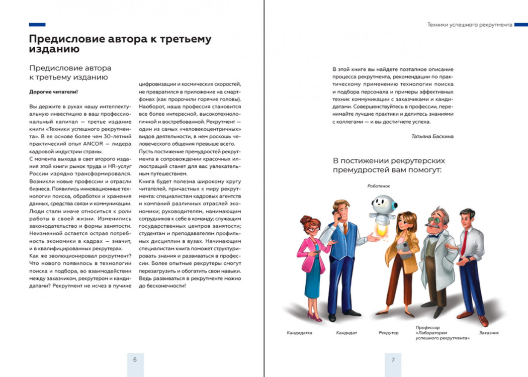 Татьяна Баскина в своей книге дает исчерпывающие ответы на эти и многие другие вопросы. Третье издание бестселлера «Техники успешного рекрутмента» - это не только поэтапное описание процесса поиска и подбора, но и увлекательное чтение с красочными иллюстрациями, необычной инфографикой и практическими рекомендациями. В постижении профессиональных премудростей читателям помогают персонажи: рекрутер, заказчик, профессор «Лаборатории успешного рекрутмента», кандидаты и роботенок.