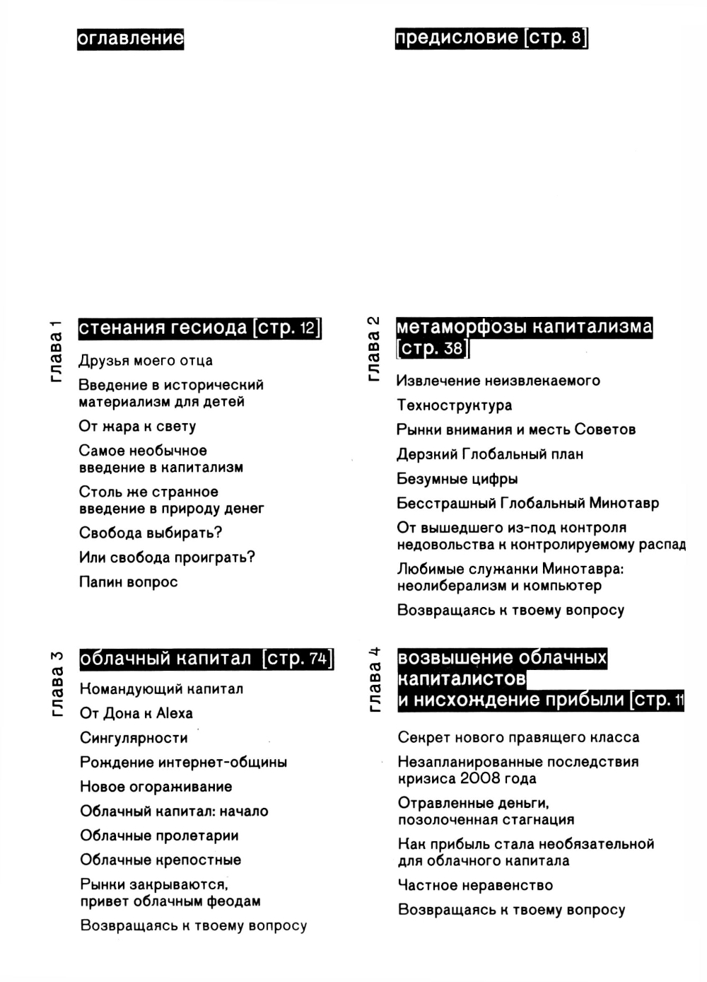 В своей новой книге, уже разошедшейся на цитаты, бывший министр экономики Греции, консультант по виртуальным товарам в играх компании Valve, публицист и теоретик Янис Варуфакис выносит приговор сложившимся мировым хозяйственным отношениям. Анализируя историю развития капитализма, экономические кризисы XX-XXI веков, а также главные политические и социальные потрясения последних десятилетий, Варуфакис показывает, как изобретение интернета и цифровых технологий привело к формированию нового строя - технофеодализма. Теперь миром правят не банкиры и капиталисты, а цифровые феодалы, такие как Google, Apple, Amazon, взимающие облачную ренту со своих вассалов и пользующиеся неоплачиваемым трудом «крепостных» интернет-пользователей. Визионер и бунтарь от экономики Варуфакис рисует карту новой геополитической напряженности между двумя главными технофеодальными странами США и Китаем и намечает пути освобождения «облачных пролетариев» от цифровых оков.| Издательство | Ад Маргинем Пресс |