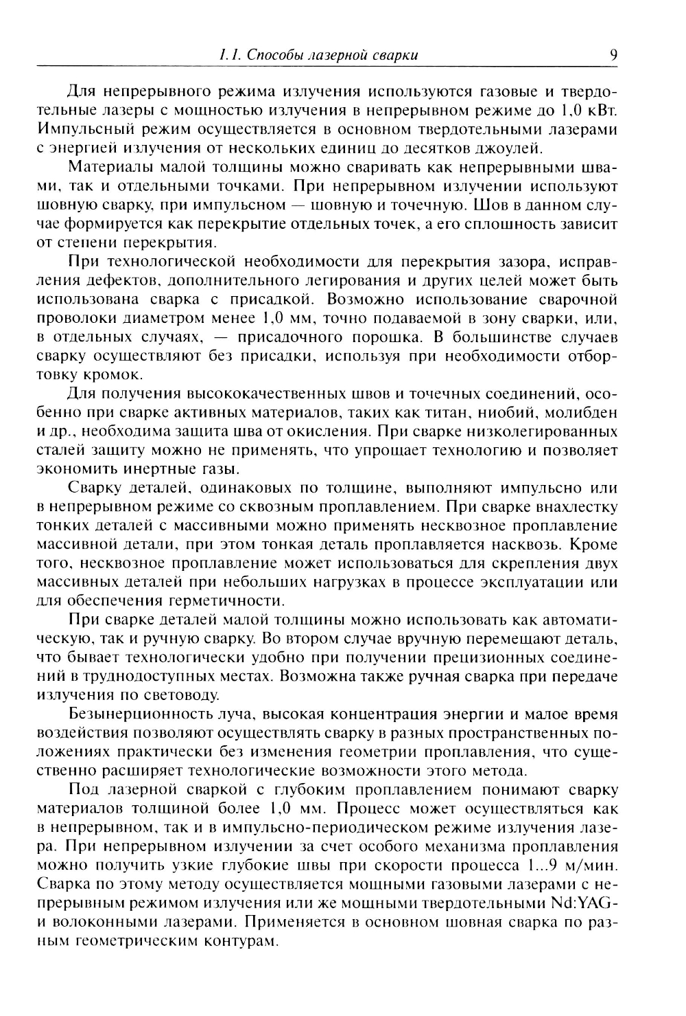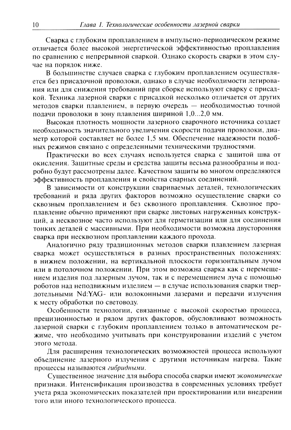 В монографии рассмотрены технологические процессы лазерной сварки сталей, цветных металлов и других материалов малой, средней и большой толщины, типы сварных соединений и возникающие дефекты. Представлены технологические режимы сварки, механизмы формирования и получаемые механические свойства сварных соединений. Приведены общие сведения о процессе лазерной резки металлов и неметаллов, физических механизмах лазерной резки, способах резки импульсным и непрерывным излучением в струе кислорода, воздуха, инертных газов и воды в режиме плавления и испарения, технологии скрайбирования и термораскалывания хрупких материалов. Представлены процессы лазерной размерной обработки, в частности технологические процессы лазерного нанесения изображений на металлические и неметаллические материалы для маркирования, а также способы и режимы пробивки отверстий в металлах и неметаллах. Для научных работников и технологов, работающих в области лазерных технологий, а также для студентов и аспирантов высших учебных заведений.
