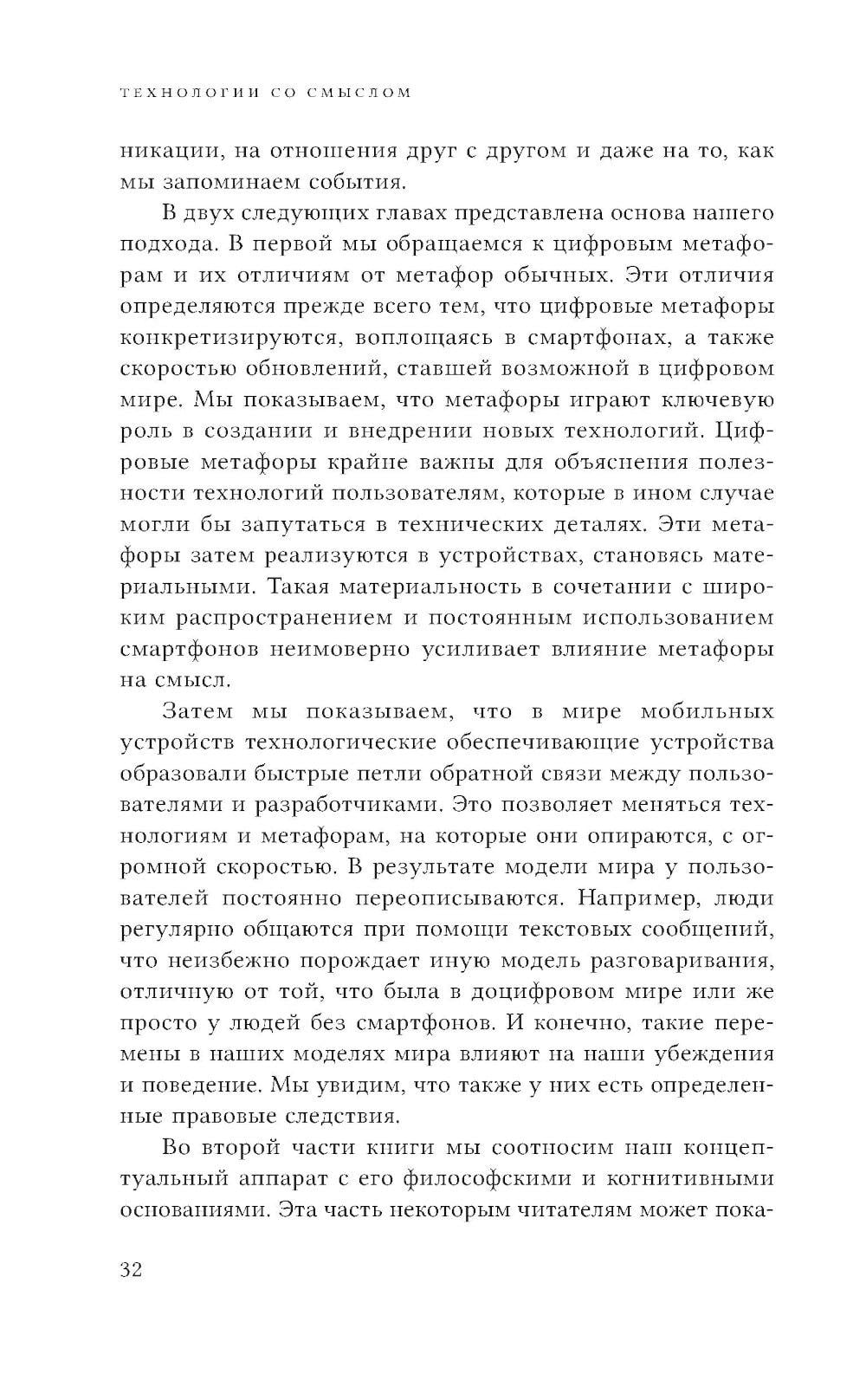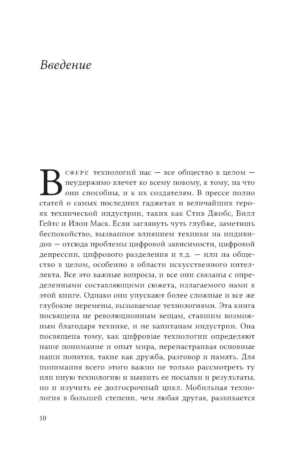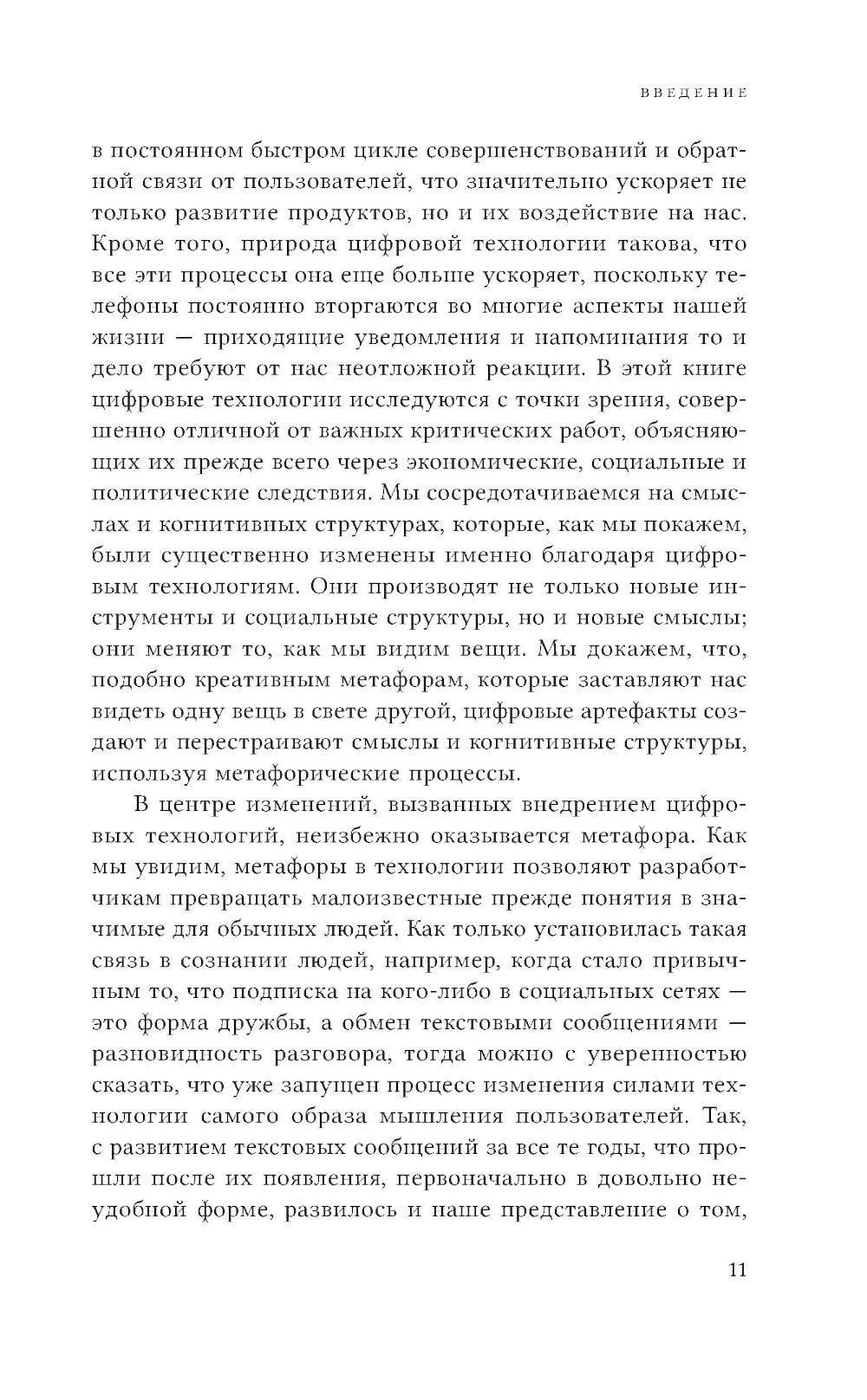 Смартфоны стали неотъемлемой частью нашей жизни и изменили наши представления о мире. Социальные сети заставили нас по-новому взглянуть на дружбу, воспоминания и т. д. Для современных подростков «разговор» может означать что угодно - от переписки в мессенджерах до живого общения. Эрик Чоун и Фернанду Насименту исследуют, как цифровые технологии влияют на жизнь каждого из нас. Между нами и цифровыми технологиями существует постоянная обратная связь: мы их используем, а они при этом меняют нас. Это взаимодействие рассматривается в книге с т очки зрения философии и когнитивной науки. Авторы изучают воздействие цифровых технологий на смысл и его изменения во времени, анализируют их влияние на обучение и внимание человека. Они считают, что приложения обрели некую самостоятельность, которой не было у ранних технологий. Но мы, в свою очередь, можем отстаивать самостоятельность, критически оценивая приложения и технологии в целом. Книга адресована культурологам, специалистам в области цифровых медиа, а также всем, кого интересует этическое значение цифровых технологий.| Издательство | ИД Высшей школы экономики |