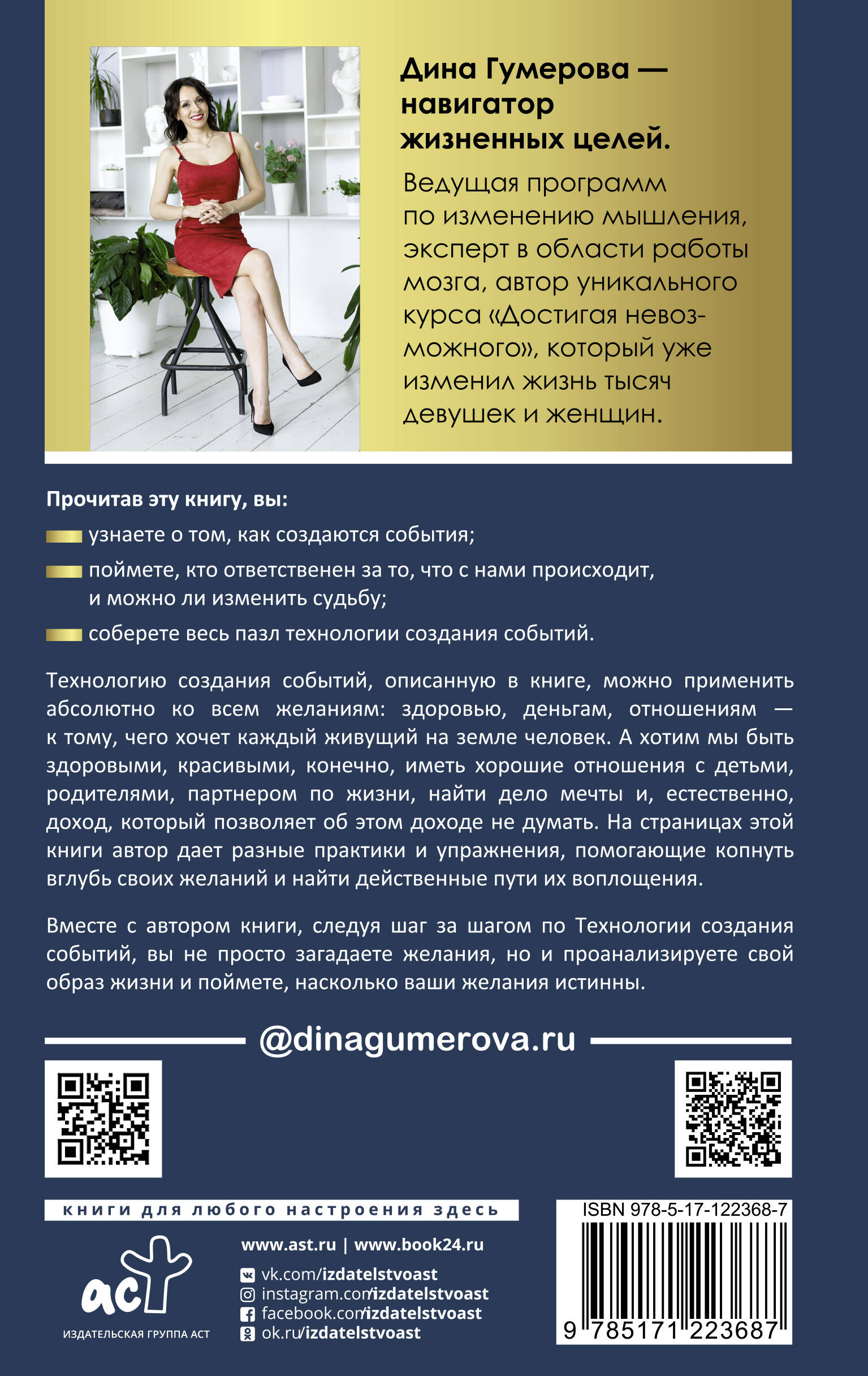 Дина Гумерова - навигатор жизненных целей. Ведущая программ по изменению мышления, эксперт в области работы мозга, автор уникального курса «Достигая невозможного», который уже изменил жизнь тысяч девушек и женщин.| Издательство | ИЗДАТЕЛЬСТВО "АСТ" |