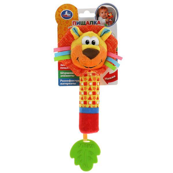 Аннотация: Текстильная игрушка погремушка лев пищалка функционал Умка в кор.250шт