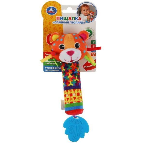 Текстильная игрушка погремушка пищалка леопард с прорез. Умка в кор.250шт