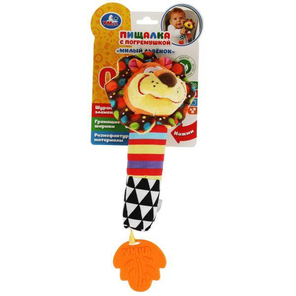 Аннотация: Текстильная игрушка погремушка-пищалка лев на карт. в пак. (русс. уп.) "Умка" в кор.240шт