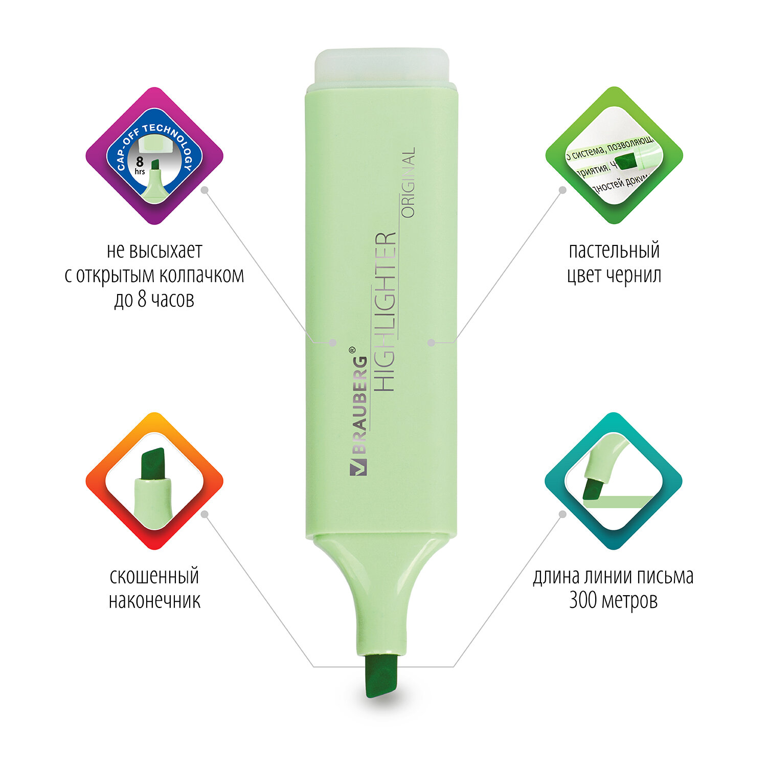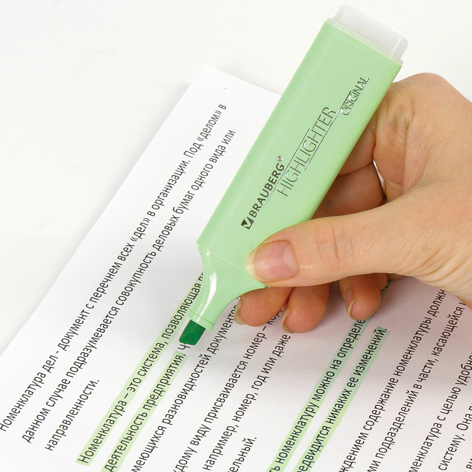 Текстовыделитель Brauberg "Original Pastel" предназначен для выделения текста на бумаге любого типа, включая факс-бумагу.