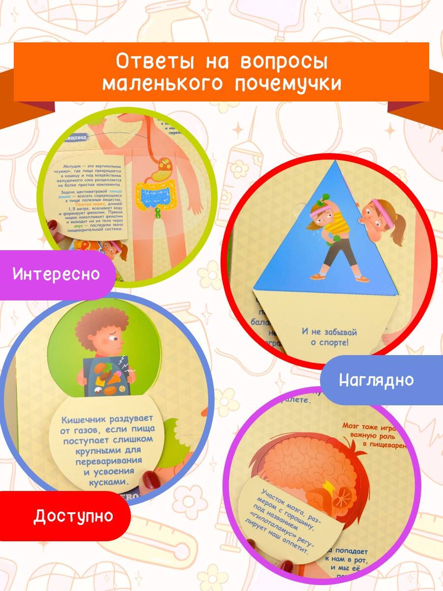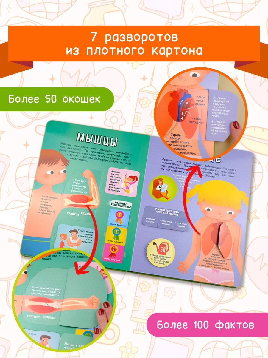 Как мы дышим? Что происходит, когда мы чихаем? Как устроен наш мозг?.. Прекрасная книга со множеством открывающихся окошек поможет юным любознайкам ответить на все эти и многие другие вопросы и совершить увлекательнейшее путешествие в мир человеческой физиологии. Богато иллюстрированные страницы, сопровождаемые простыми, но исчерпывающими текстами, сделают чтение лёгким и увлекательным. Более 100 интересных фактов, расположенных на 50 окошках и под ними, превратят обучение в интерактивный и весёлый процесс.| Издательство | ИЗДАТЕЛЬСТВО "АСТ" |