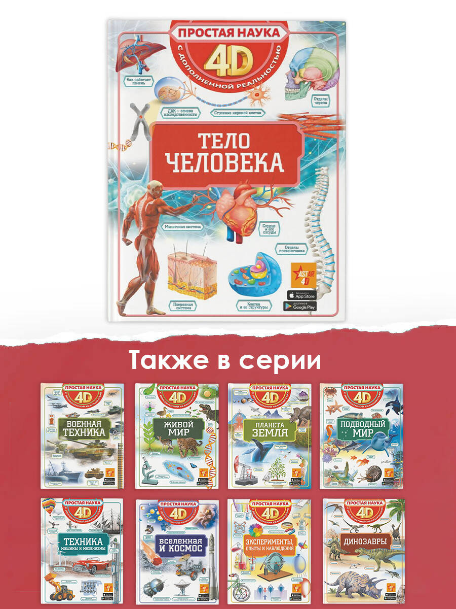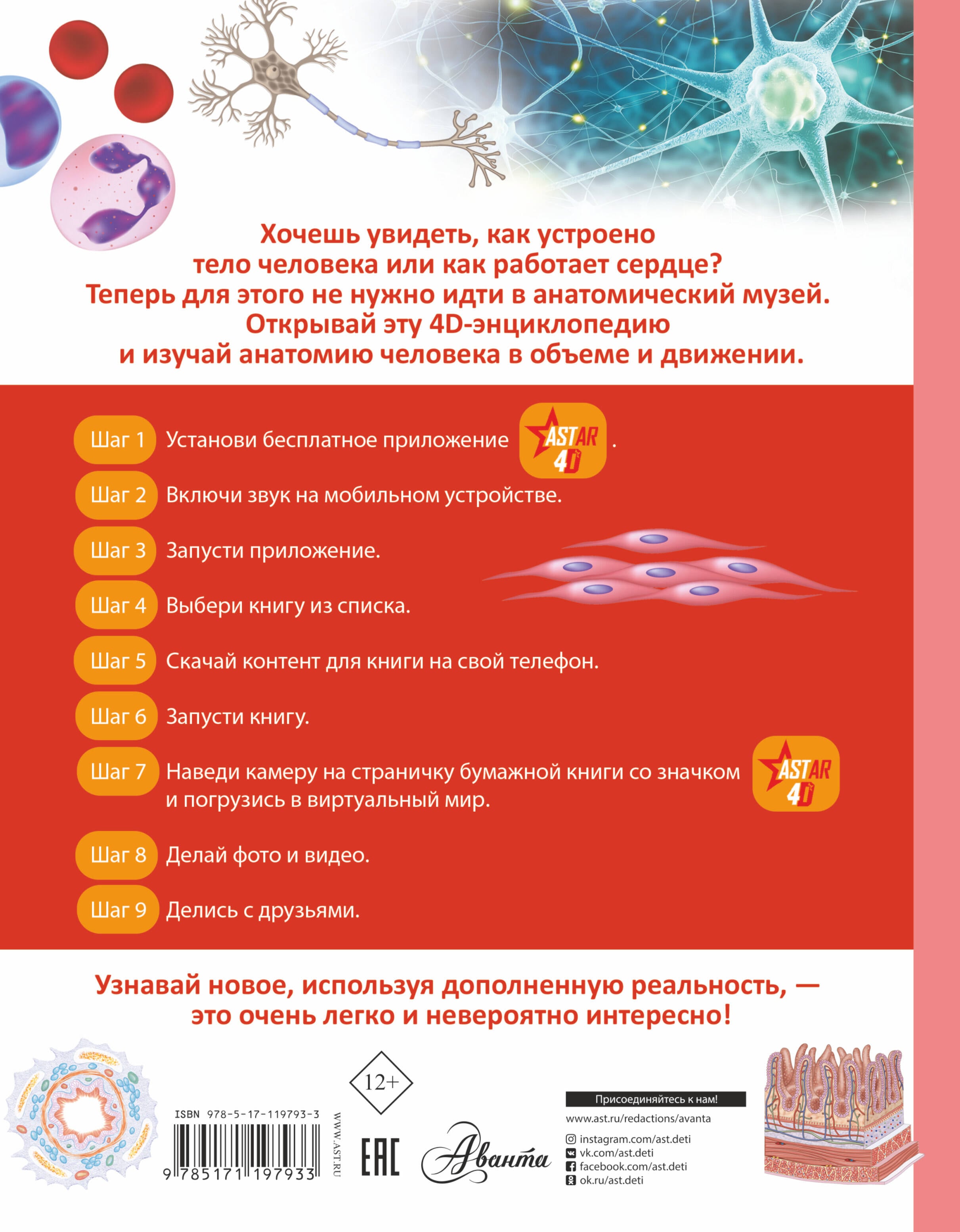 Эта книга рассказывает об анатомии и физиологии человека. Познакомиться со строением человеческого тела и понаблюдать за работой внутренних органов теперь можно прямо на этих страницах, ведь это не обычная книга, а 4D-издание! Читай, изучай иллюстрации, рассматривай объемные движущиеся модели, слушай познавательные аудиозаписи. Элементы дополненной реальности обязательно помогут новым знаниям запомниться надолго. Изучать анатомию в 4D не только легко, но невероятно интересно! Для среднего и старшего школьного возраста.| Издательство | Издательство "АСТ" |