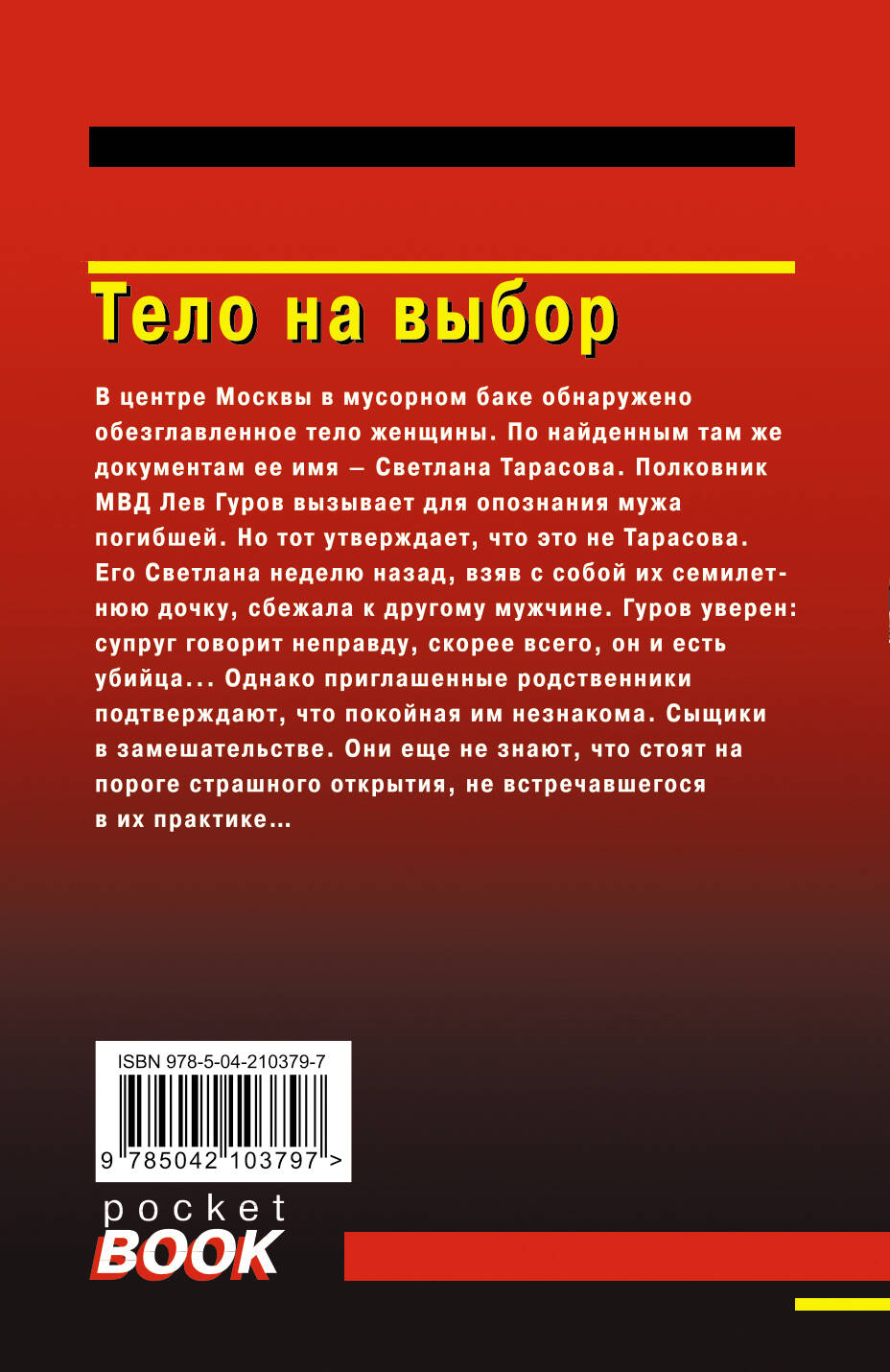 В центре Москвы в мусорном баке обнаружено обезглавленное тело женщины. По найденным там же документам ее имя - Светлана Тарасова. Полковник МВД Лев Гуров вызывает для опознания мужа погибшей. Но тот утверждает, что это не Тарасова. Его Светлана неделю назад, взяв с собой их семилетнюю дочку, сбежала к другому мужчине. Гуров уверен: супруг говорит неправду, скорее всего, он и есть убийца... Однако приглашенные родственники подтверждают, что покойная им незнакома. Сыщики в замешательстве. Они еще не знают, что стоят на пороге страшного открытия, не встречавшегося в их практике… Николай Леонов, в прошлом следователь МУРа, не понаслышке знал, как раскрываются самые запутанные уголовные дела. Ставшая классической серия «Черная кошка» насчитывает более 200 книг, вышедших тиражом в десятки миллионов экземпляров.| Издательство | ООО "Издательство "Эксмо" |