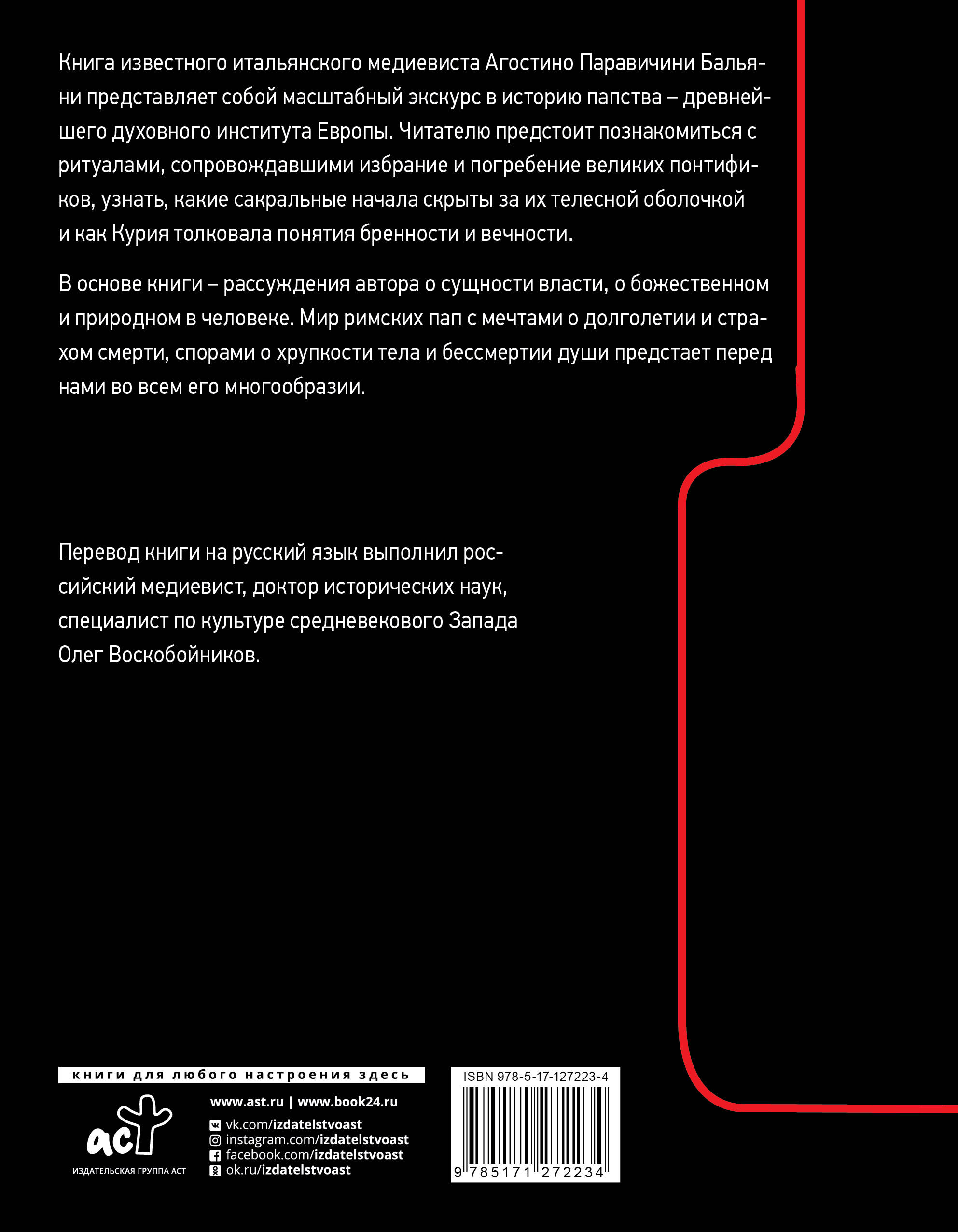 Новая книга итальянского медиевиста и культурного антрополога Агостино Паравичини Бальяни! Впервые на русском языке! Что мы знаем о верховных правителях Священного Престола на самом деле? Масштабный экскурс в историю пасптва - древнейшего духовного института Европы, с точки зрения мифа, метафоры и телесного начала!| Издательство | Издательство "АСТ" |