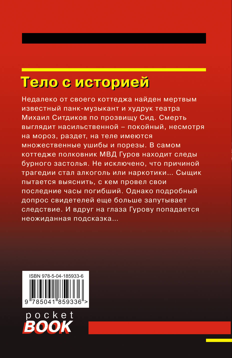 Недалеко от своего коттеджа найден мертвым известный панк-музыкант и худрук театра Михаил Ситдиков по прозвищу Сид. Смерть выглядит насильственной - покойный, несмотря на мороз, раздет, на теле имеются множественные ушибы и порезы. В самом коттедже полковник МВД Гуров находит следы бурного застолья. Не исключено, что причиной трагедии стал алкоголь или наркотики… Сыщик пытается выяснить, с кем провел свои последние часы погибший. Однако, подробный допрос свидетелей еще больше запутывает следствие. И вдруг на глаза Гурову попадается неожиданная подсказка… Николай Леонов, в прошлом следователь МУРа, не понаслышке знал, как раскрываются самые запутанные уголовные дела. Ставшая классической серия «Черная кошка» насчитывает более 200 книг, вышедших тиражом в десятки миллионов экземпляров.| Издательство | ООО "Издательство "Эксмо" |